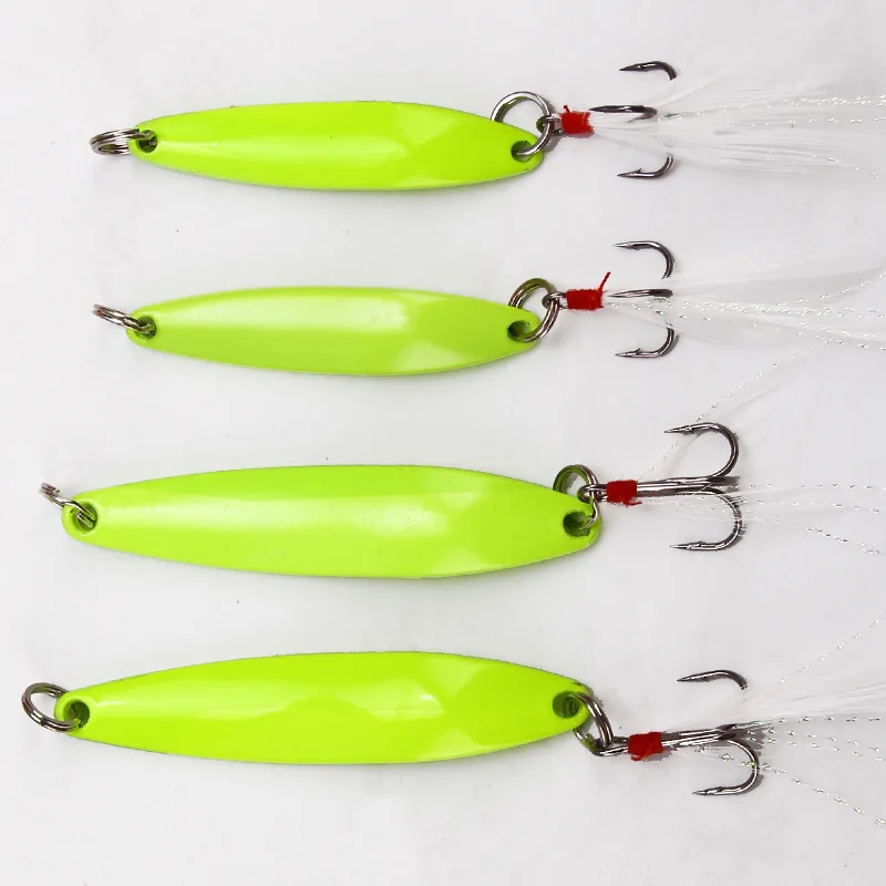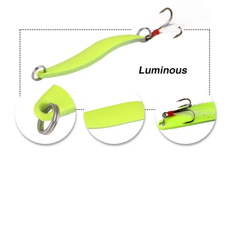 Señuelo de Pesca giratorio con cuchara luminosa de Metal, cebo duro con anzuelo de plumas, aparejos de Pesca con plátano, 5/7/10/13g