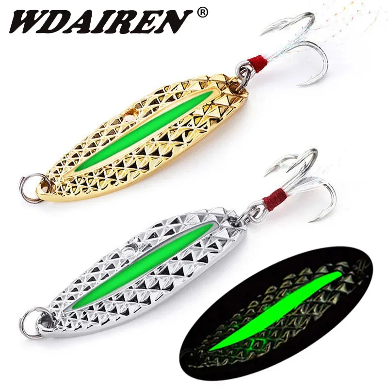 Señuelo de pesca giratorio con cuchara de Metal, cebos luminosos, 7g, 10g, 15g, lentejuelas, ruido, Paillette con pluma, anzuelo triple, herramientas de pesca, 1 ud.