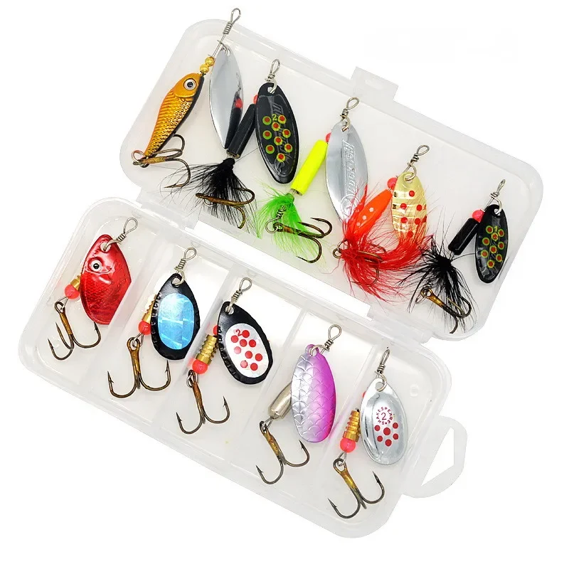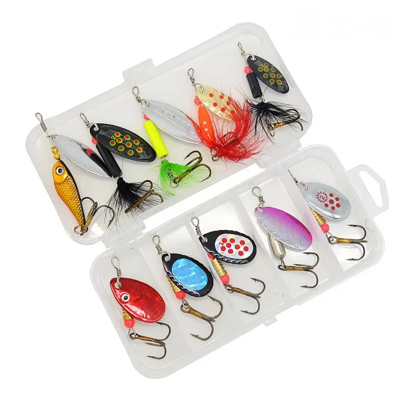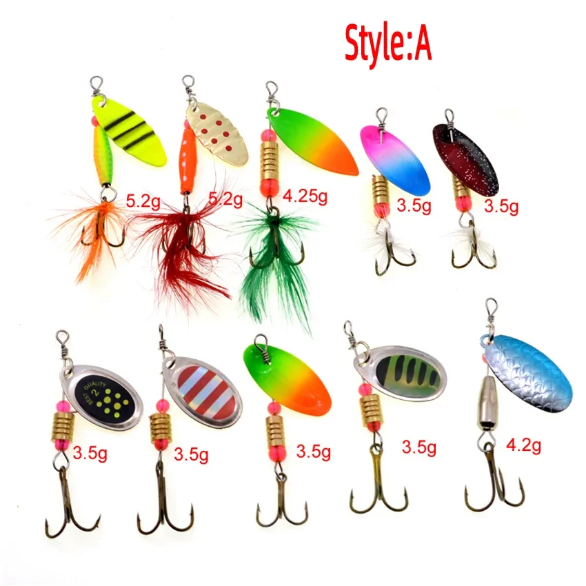Señuelo de pesca giratorio con cuchara de Metal, juego de 10 Uds., Spoonbait, Crankbaits, Wobblers de pesca para Lucio, Kit de ganchillo, cebo Artificial