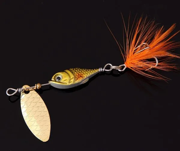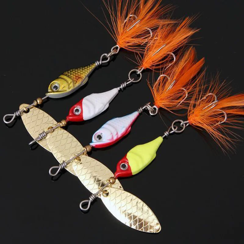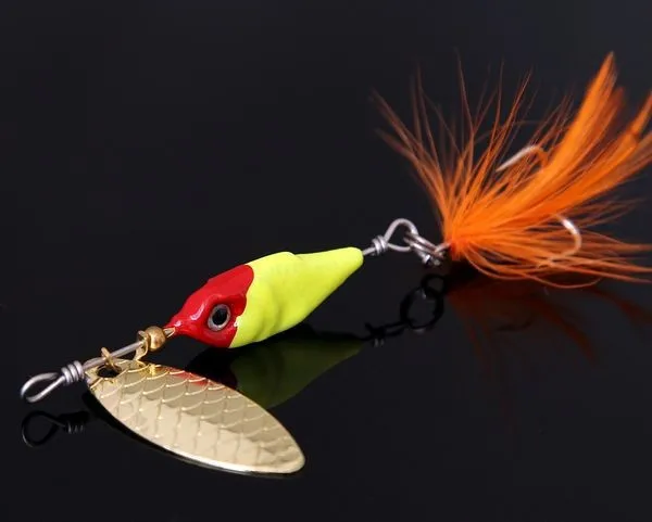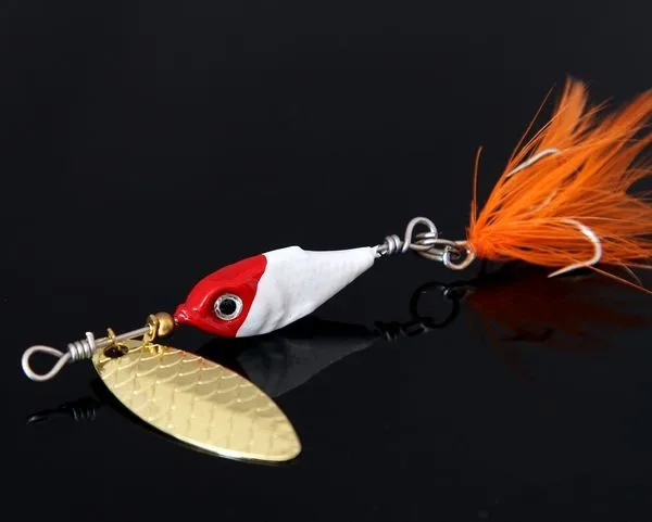 Pesca Señuelos artificiales Cebo Pluma Jigs Rotación Spinner Cuchara Cebos 10g Bass Snakehead Killer
