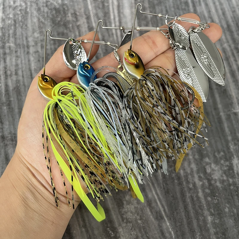 Señuelo de Pesca giratorio de goma y Metal, cebo Artificial de agua salada con falda de silicona, cuchillas giratorias, equipo de Pesca, 18g