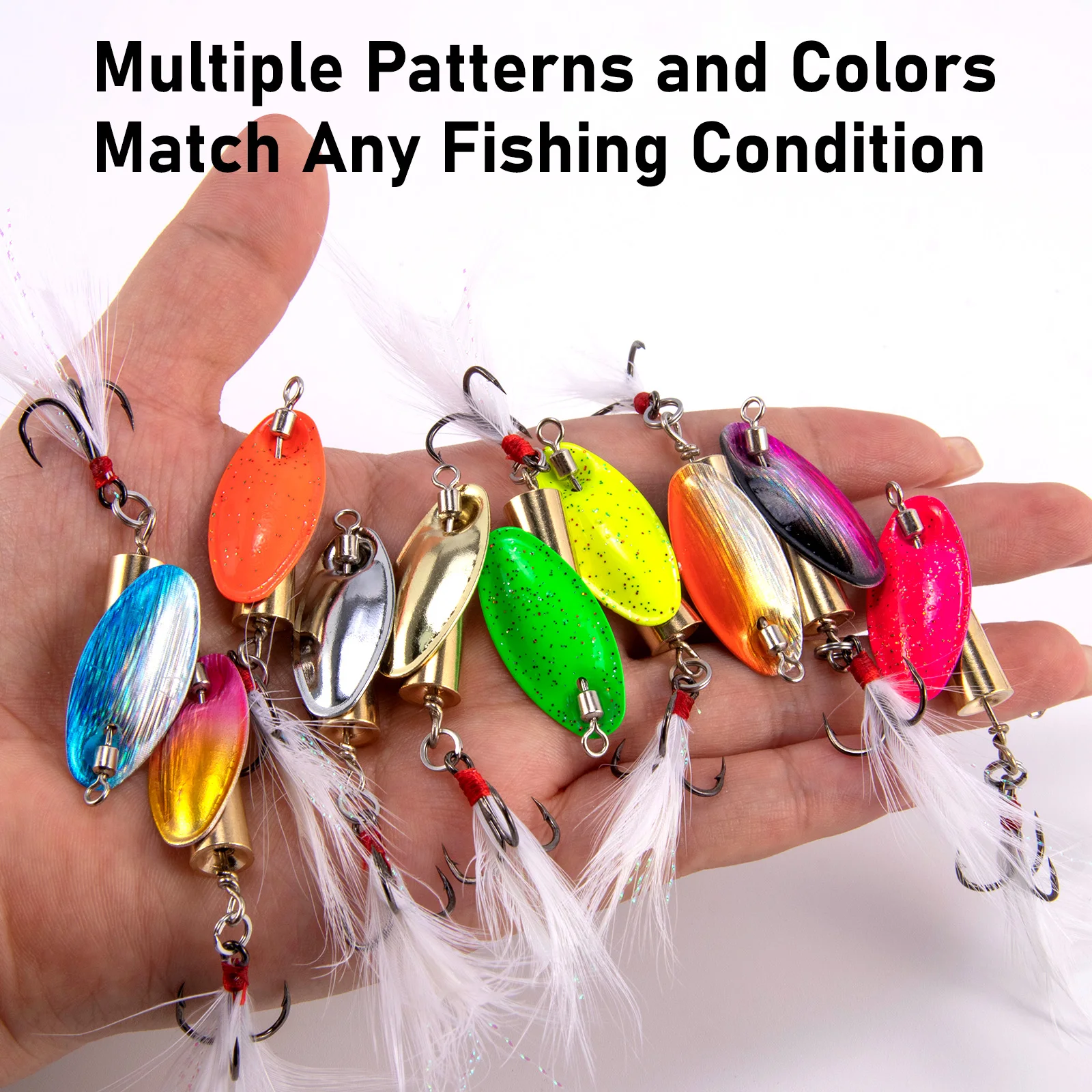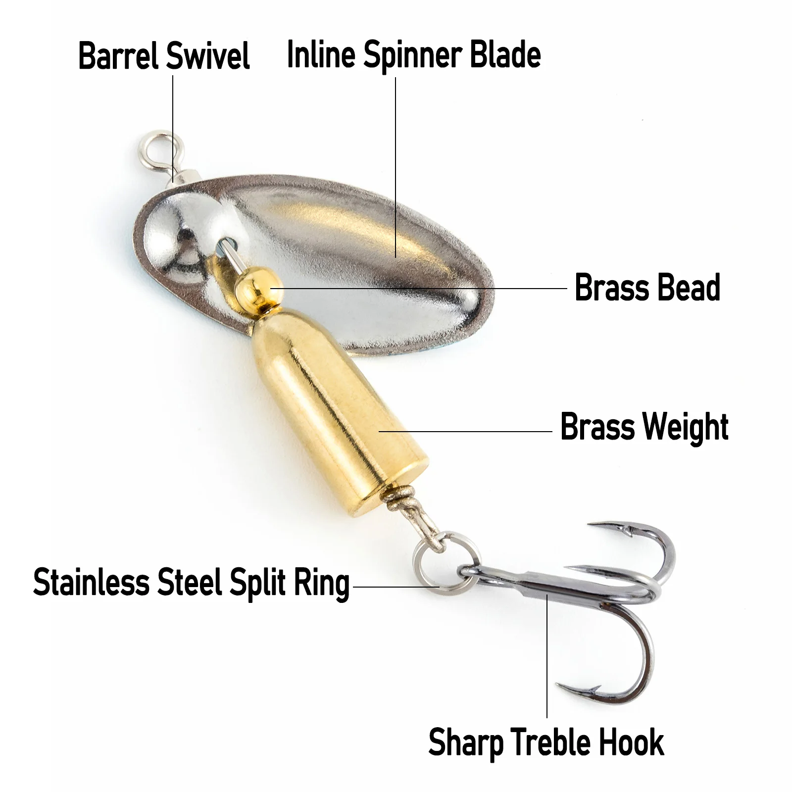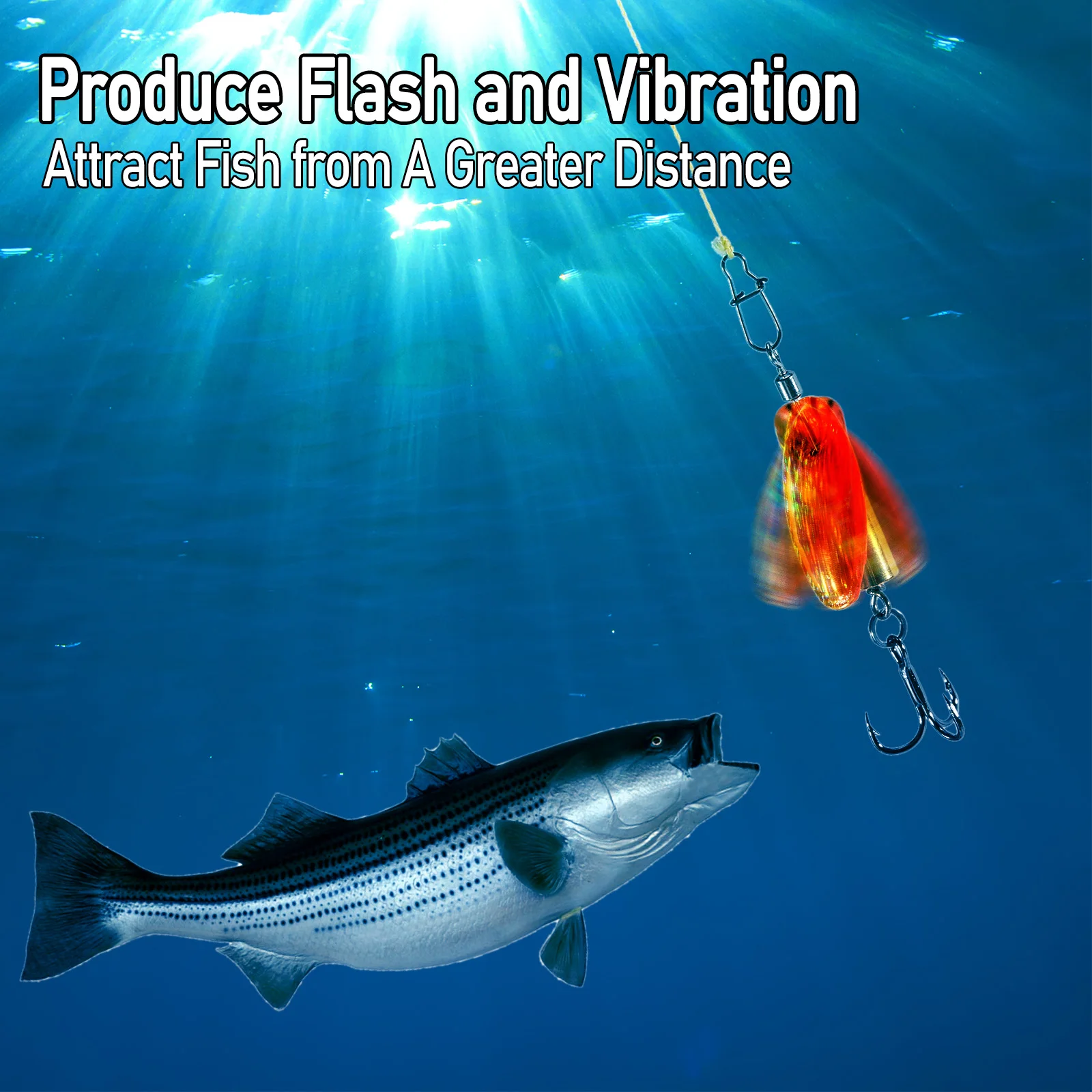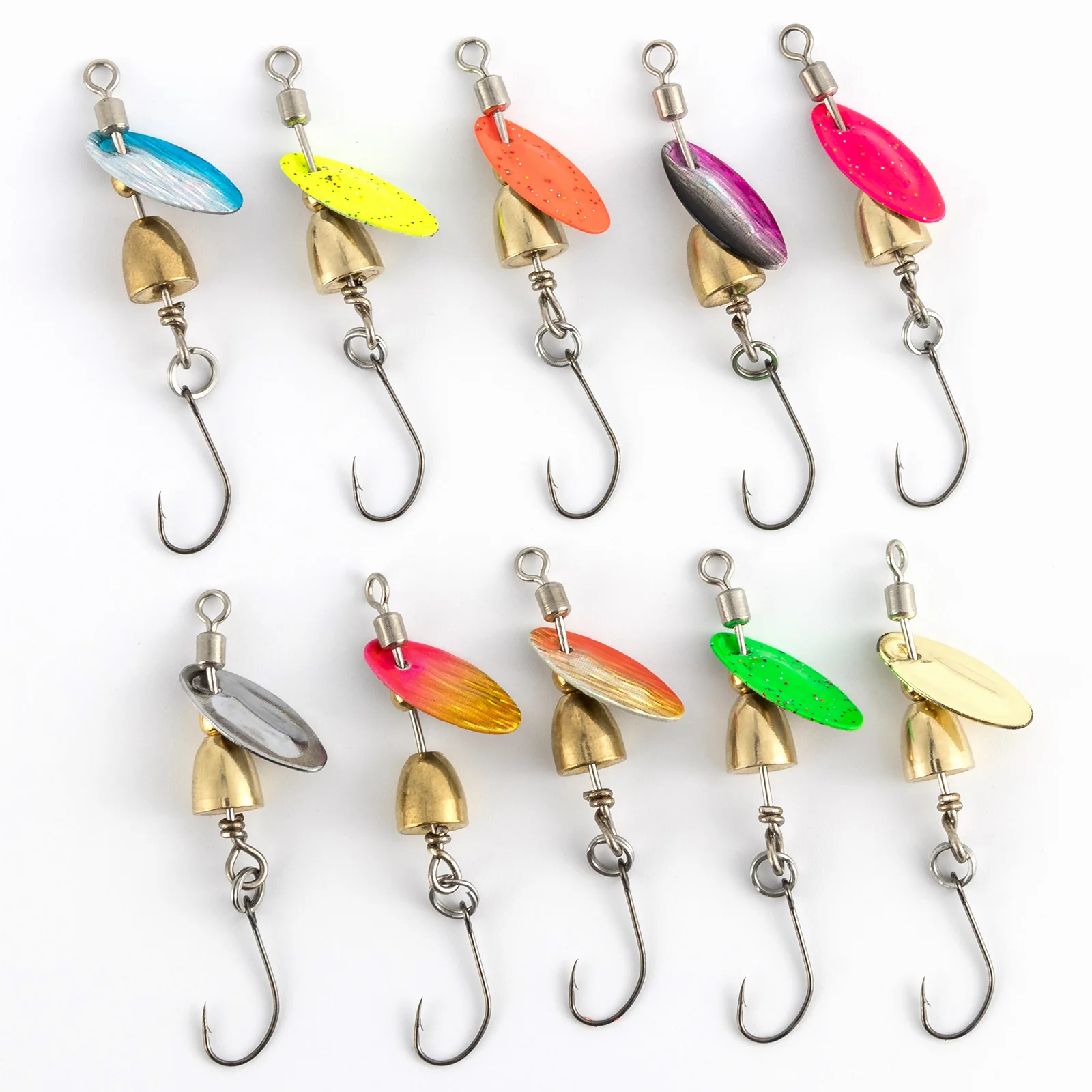 【Cebos giratorios para truchas】 Fabricado con componentes de alta calidad que incluyen grúa giratoria de 360 °, hoja giratoria de pintura colorida, cuentas de pesca, peso de latón, anillo dividido de acero inoxidable y anzuelo único de acero de alto carbono #8.