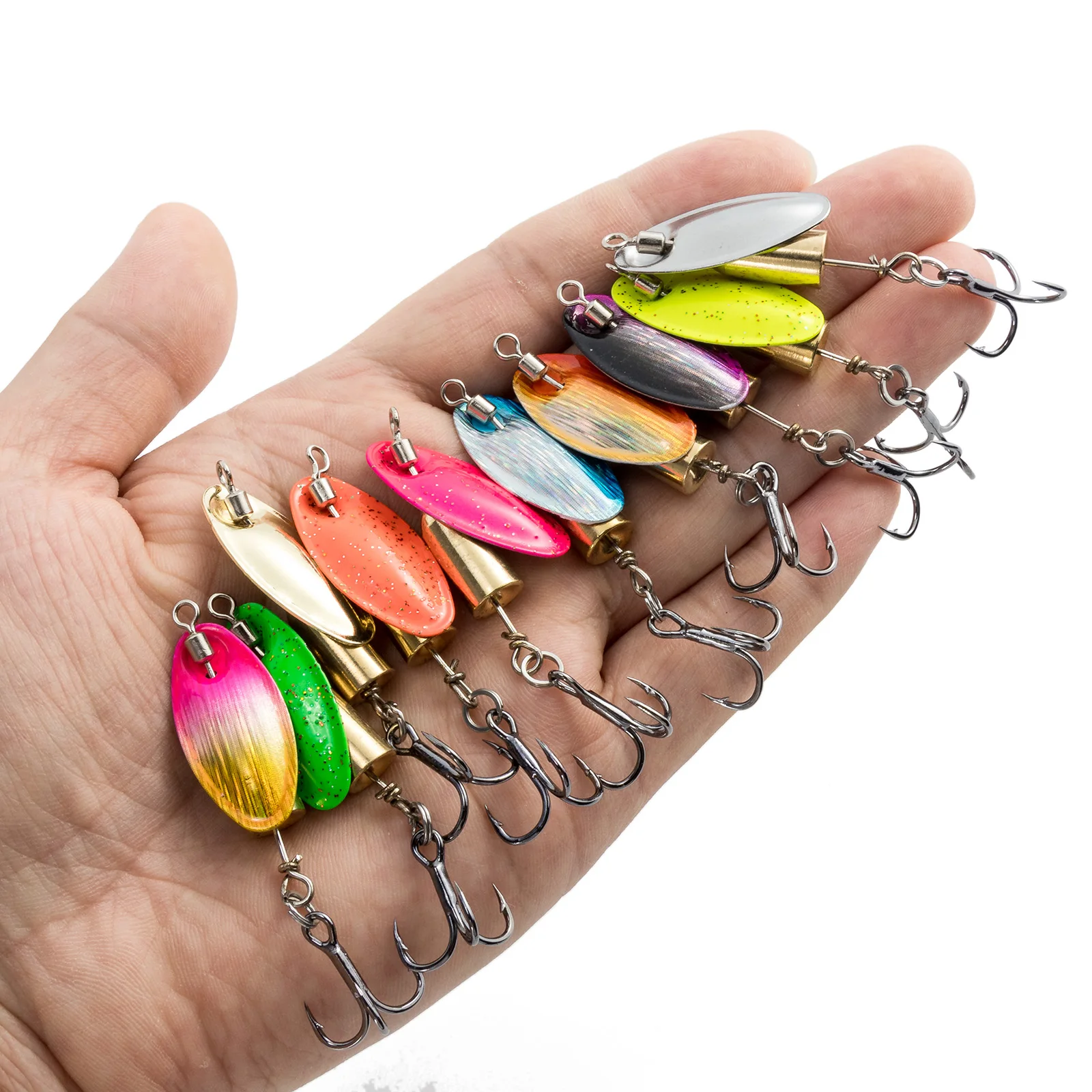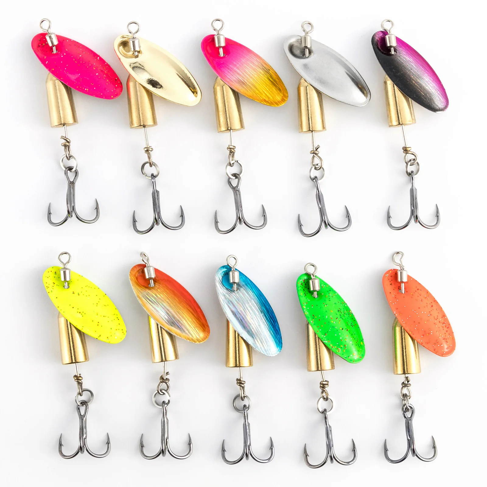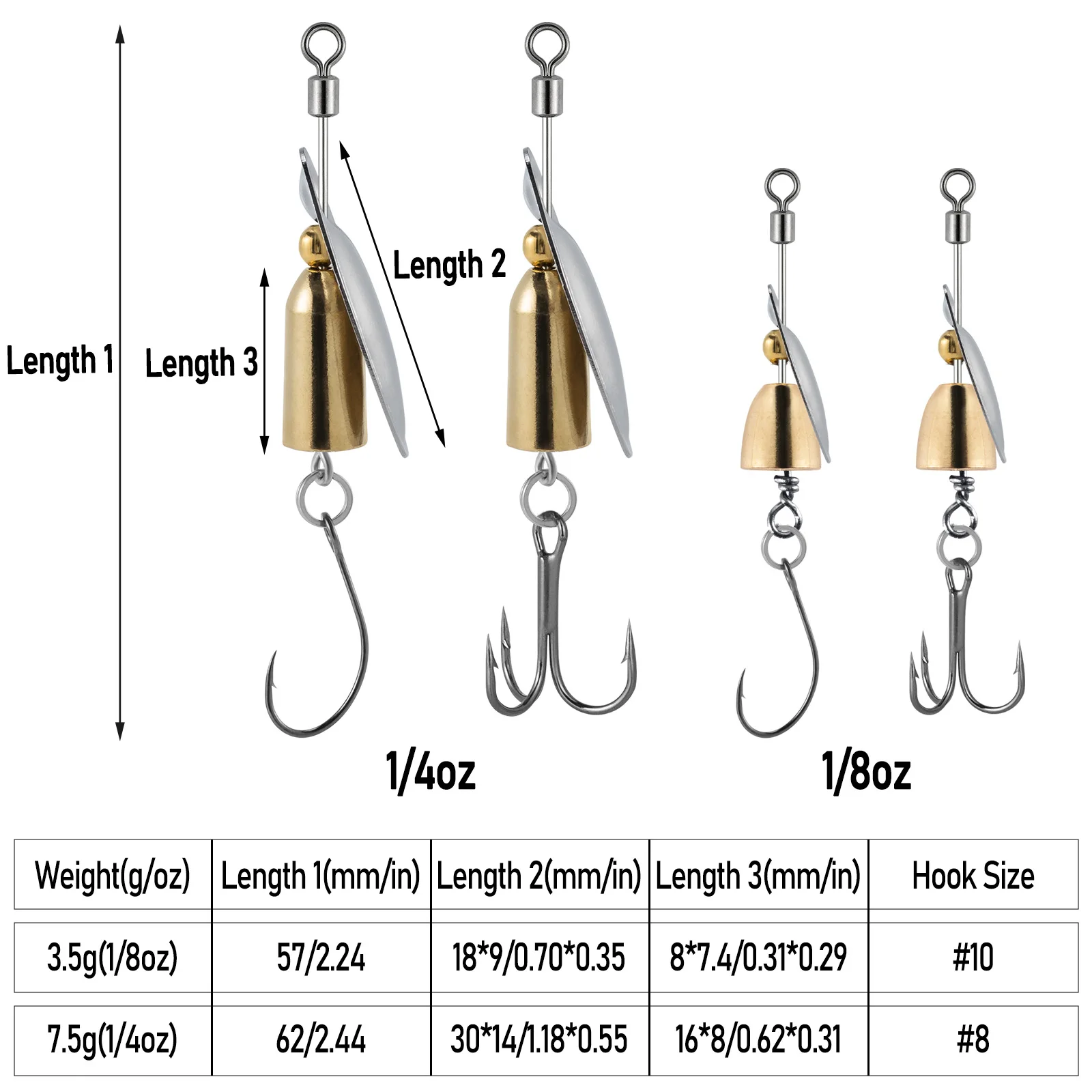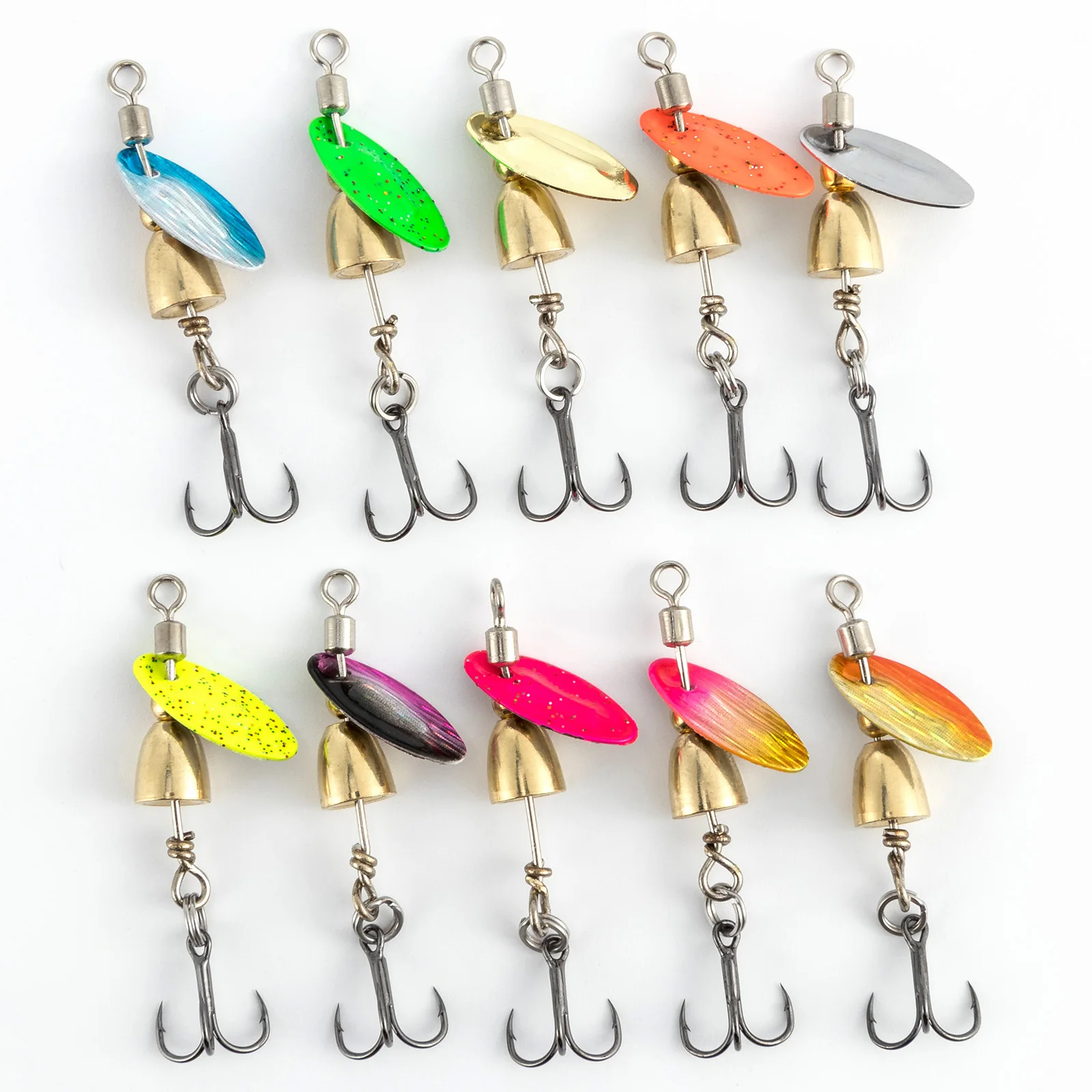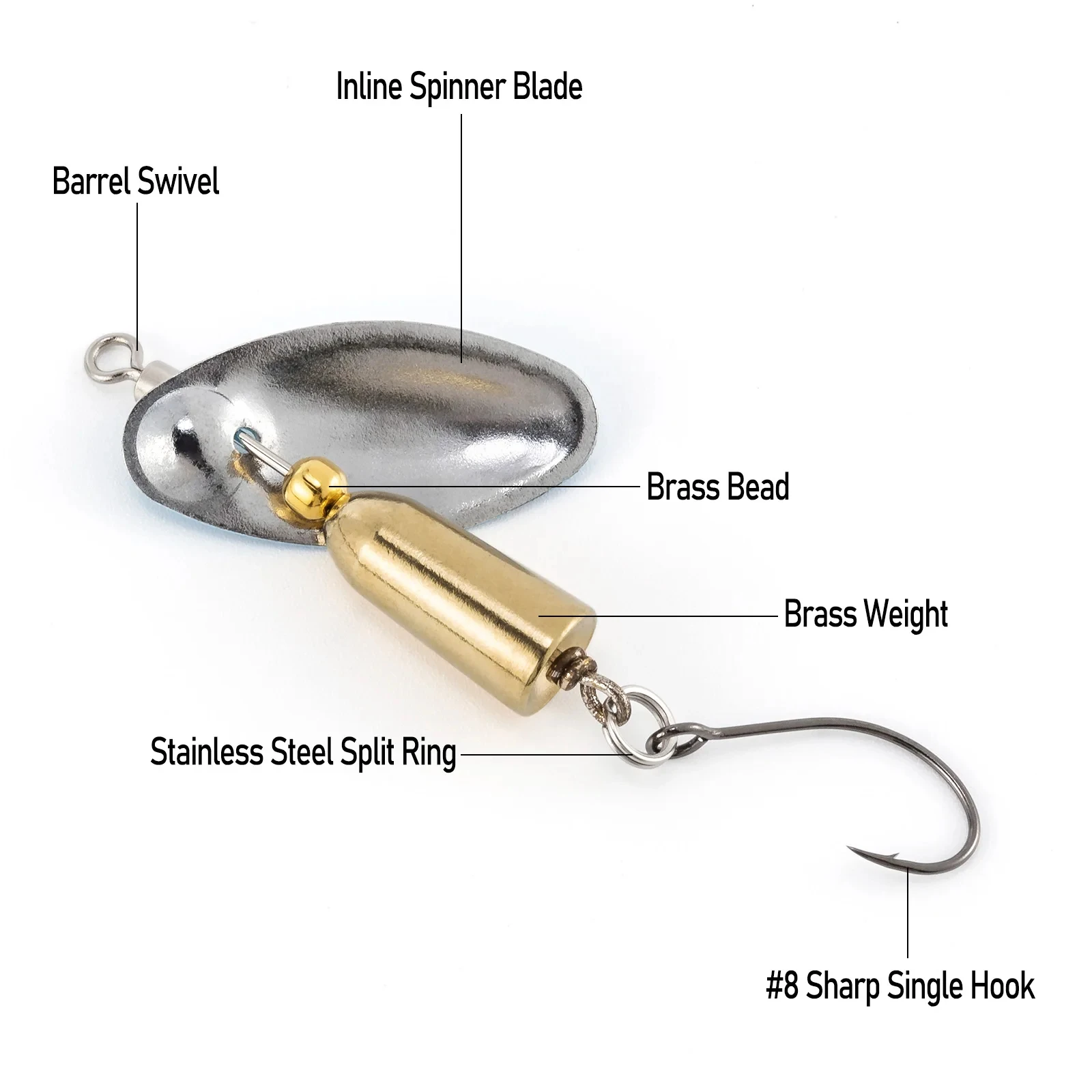 【Cebos giratorios para truchas】 Fabricado con componentes de alta calidad que incluyen grúa giratoria de 360 °, hoja giratoria de pintura colorida, cuentas de pesca, peso de latón, anillo dividido de acero inoxidable y anzuelo único de acero de alto carbono #8.