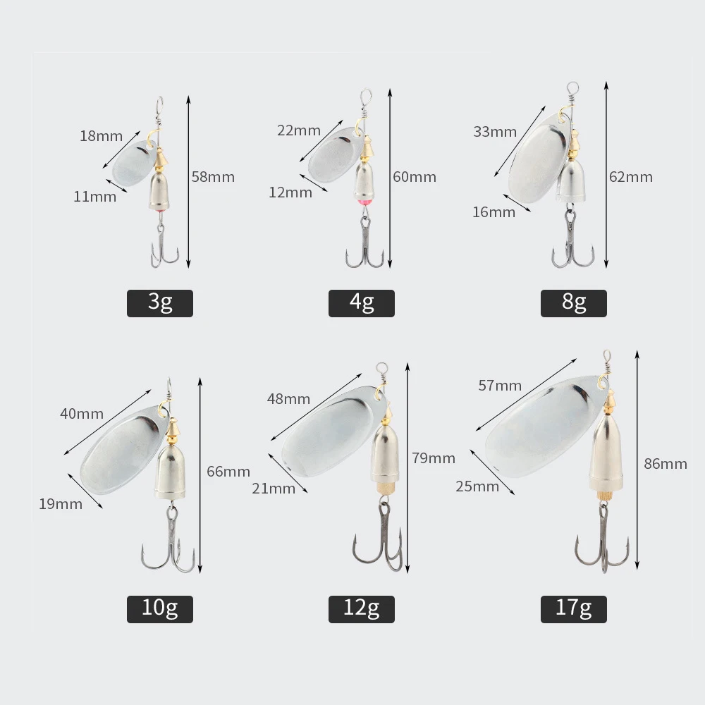 Señuelo de pesca giratorio de Metal, anzuelo giratorio largo, cuchara giratoria, cebos artificiales duros Buzz, 3g, 4g, 8g, 10g, 12g, 17g