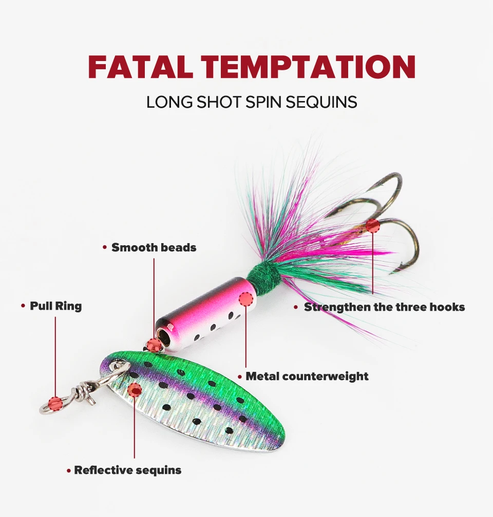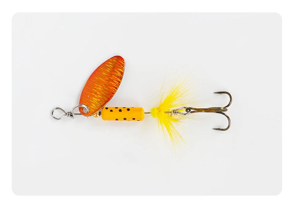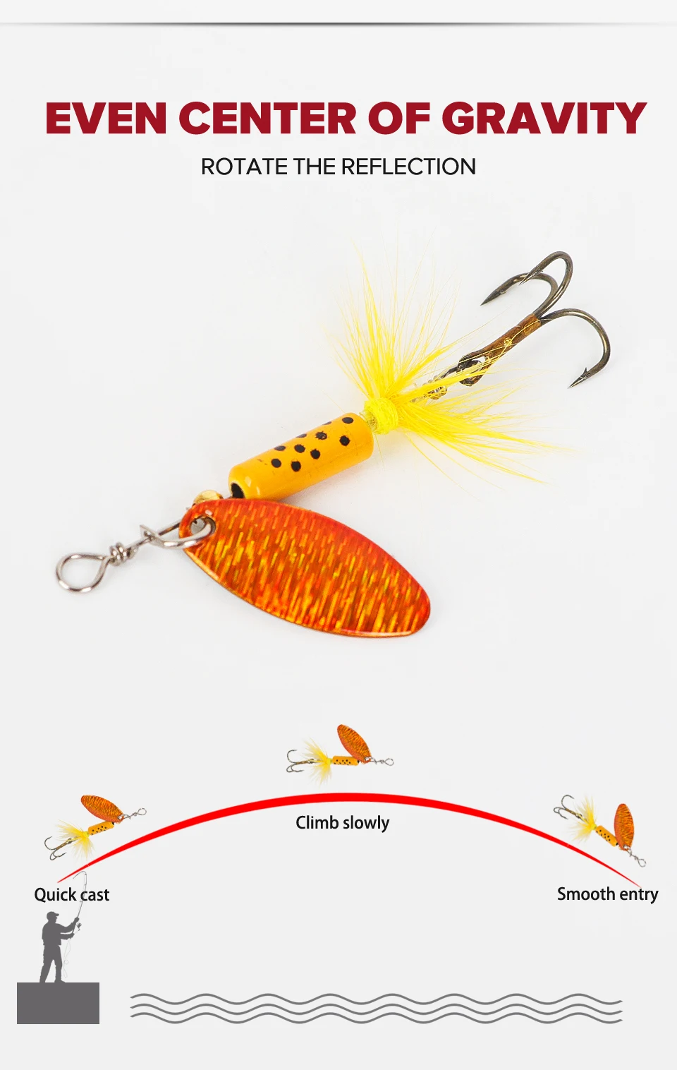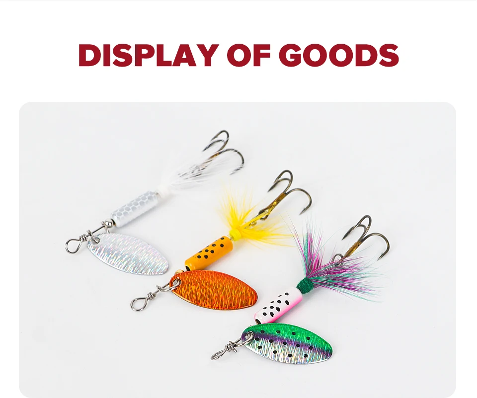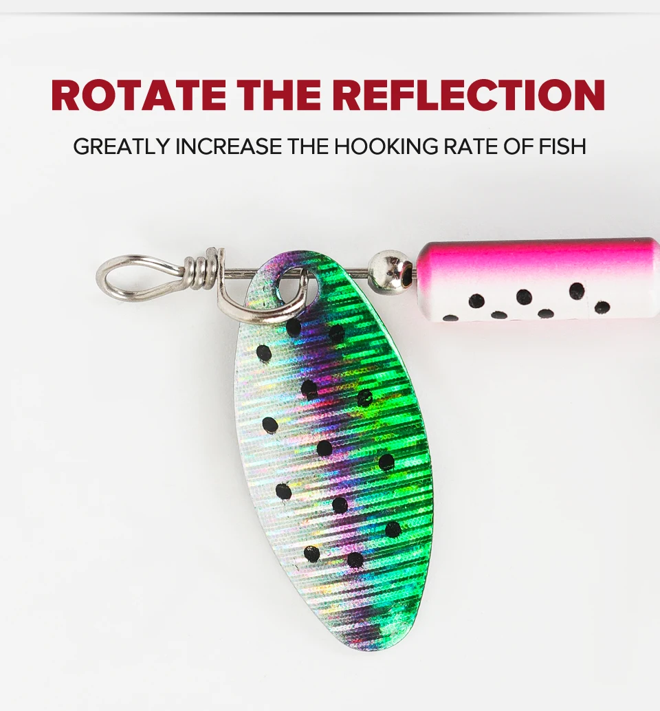 2. Sus cuchillas clásicas tienen una forma cuando el señuelo que gira como una hélice está en movimiento, creando diversos grados de destello y vibración que imita a los peces pequeños u otras presas.