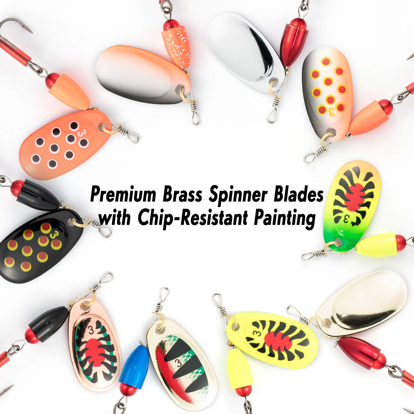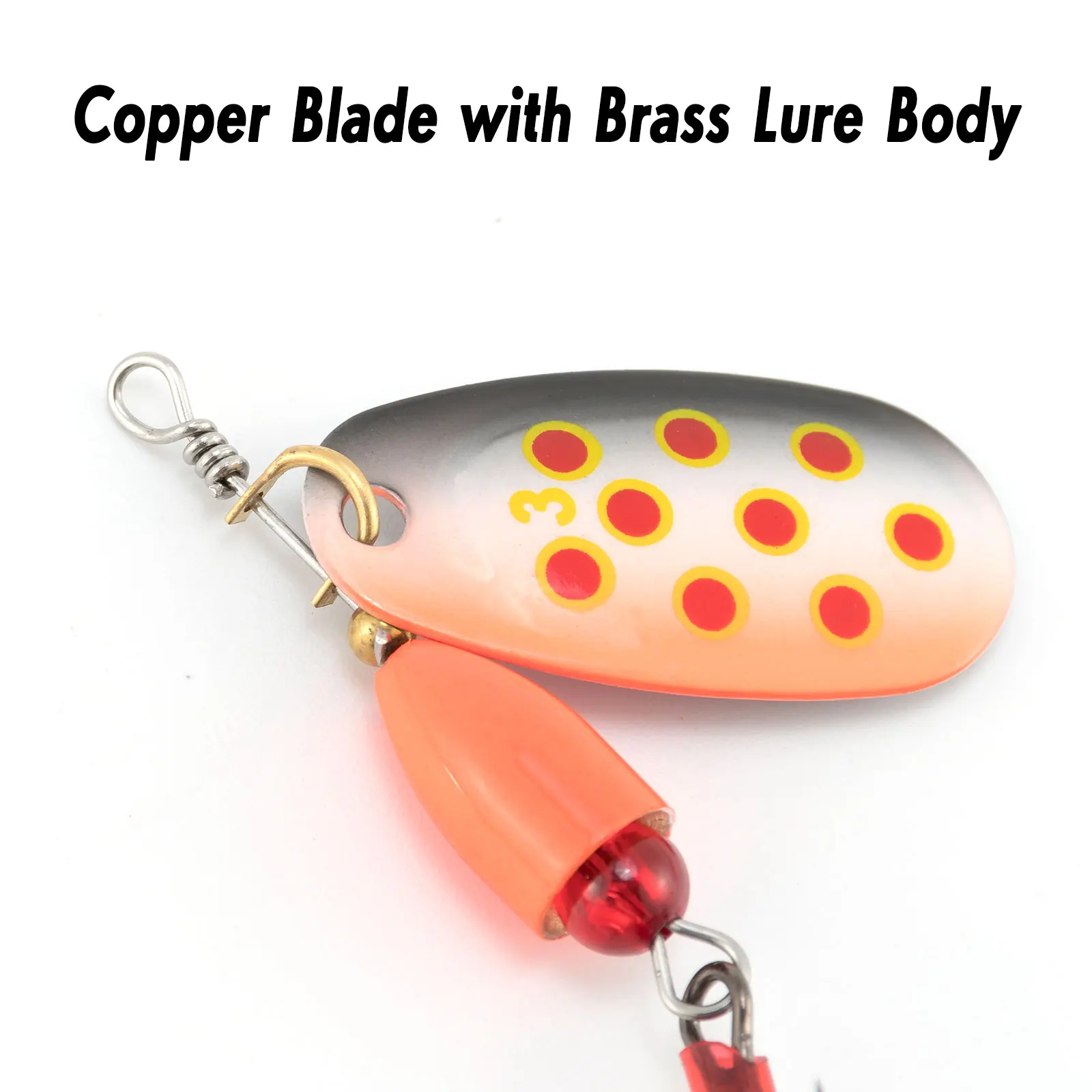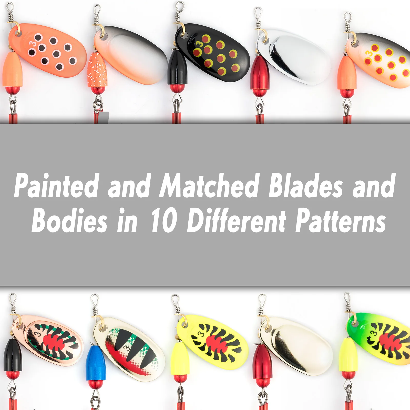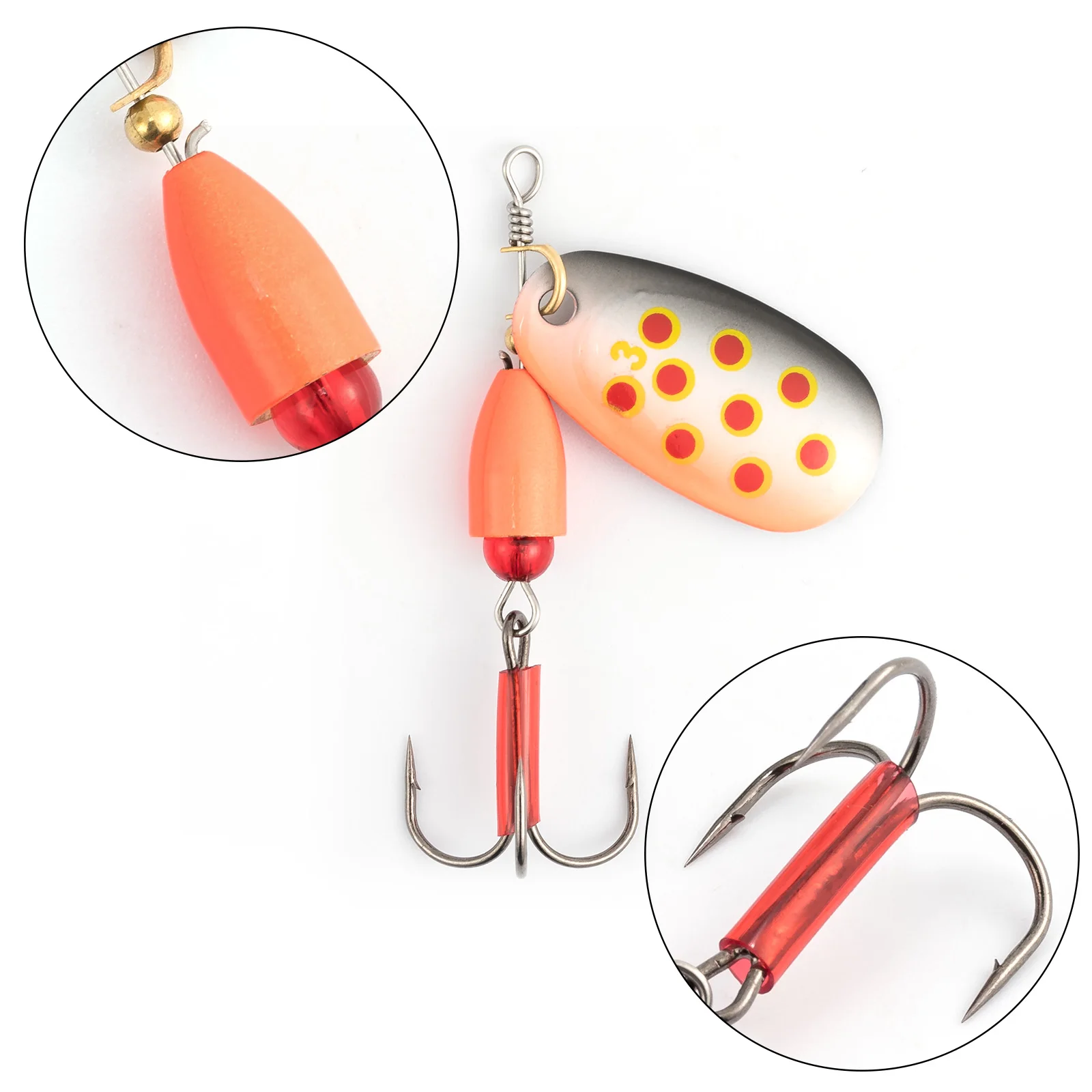 Fabricado con componentes de alta calidad que incluyen un eje de acero inoxidable que no se oxida fácilmente, un cuerpo de señuelo con forma de campana de colores brillantes, hojas pintadas de indias y anzuelos afilados.