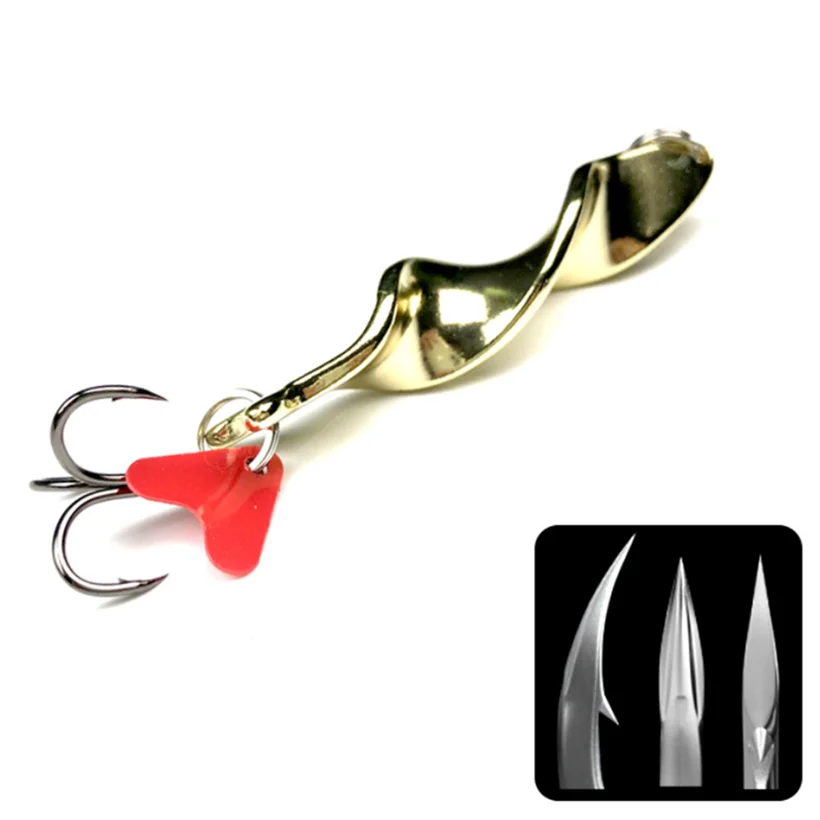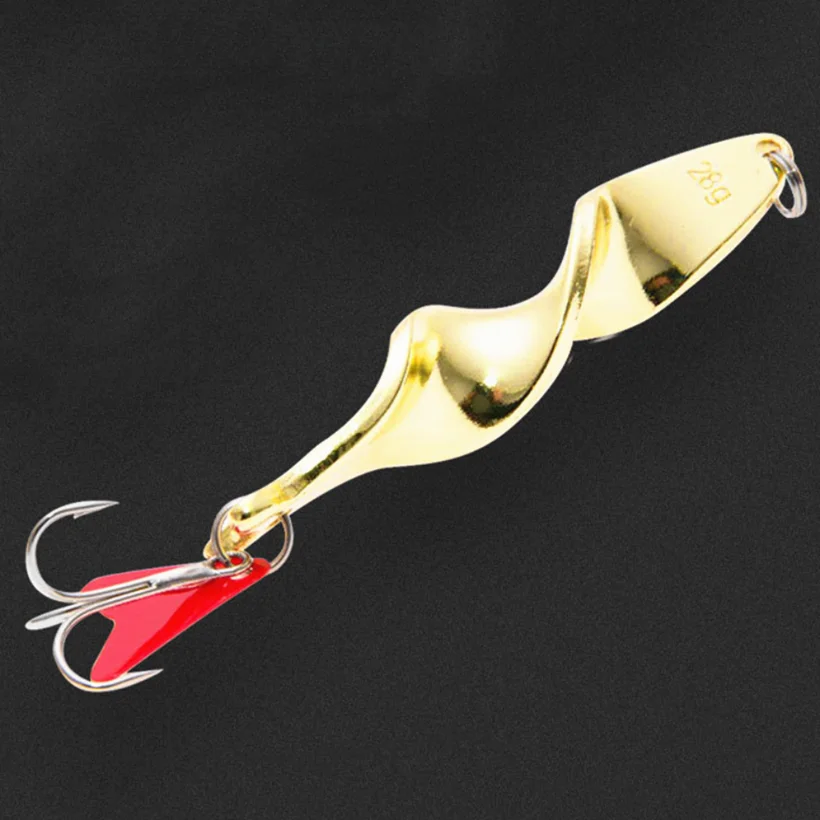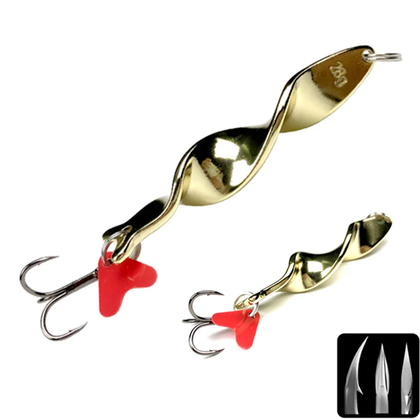 Señuelo de Pesca giratorio de Metal dorado, cebo duro para trucha, Lucio, Pesca, aparejos de gancho triple, 7g, 10g, 14g, 21g, 28g