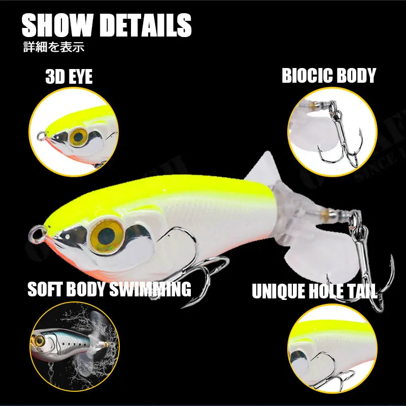 2022 señuelo de Pesca cola giratoria articulada Swimbait 65mm/9g 80mm/16g flotante Whopper Popper Accesorios Pesca Leurre Brochet Tackle