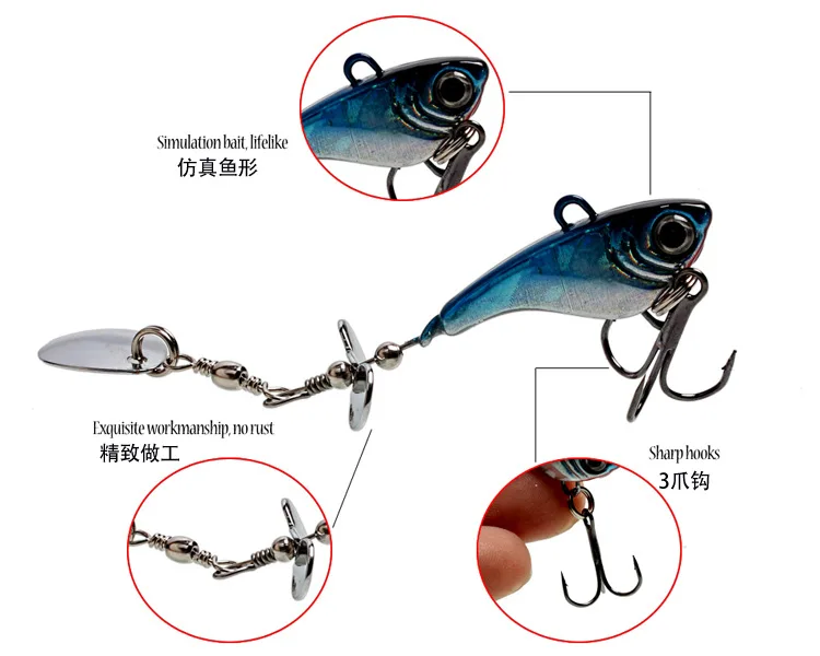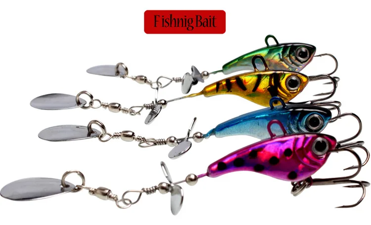 Señuelo de Pesca giratorio Vib de Metal, cuchara giratoria, cebo Artificial, anzuelos triples, Wobblers para lucios, aparejos de Pesca de lubina, 1 piezas