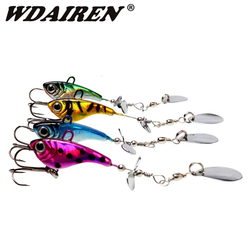 Señuelo de Pesca giratorio Vib de Metal, cuchara giratoria, cebo Artificial, anzuelos triples, Wobblers para lucios, aparejos de Pesca de lubina, 1 piezas
