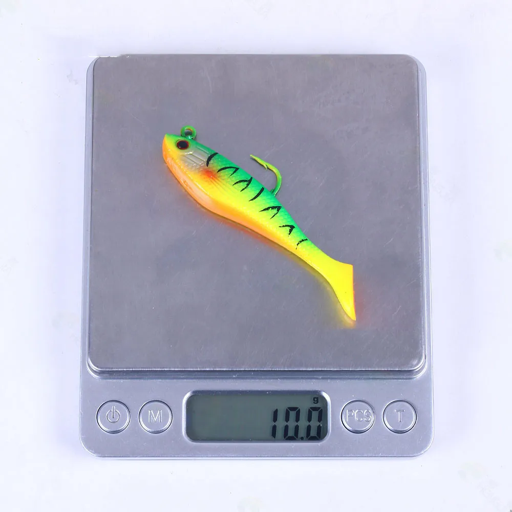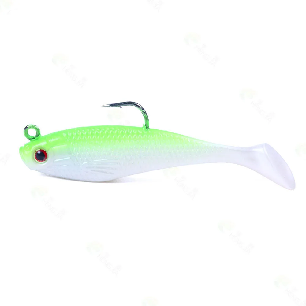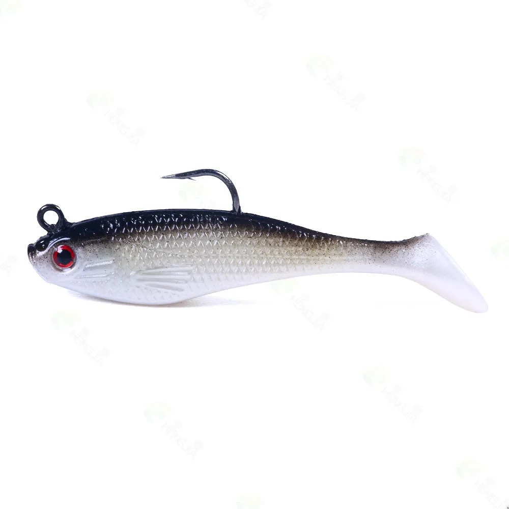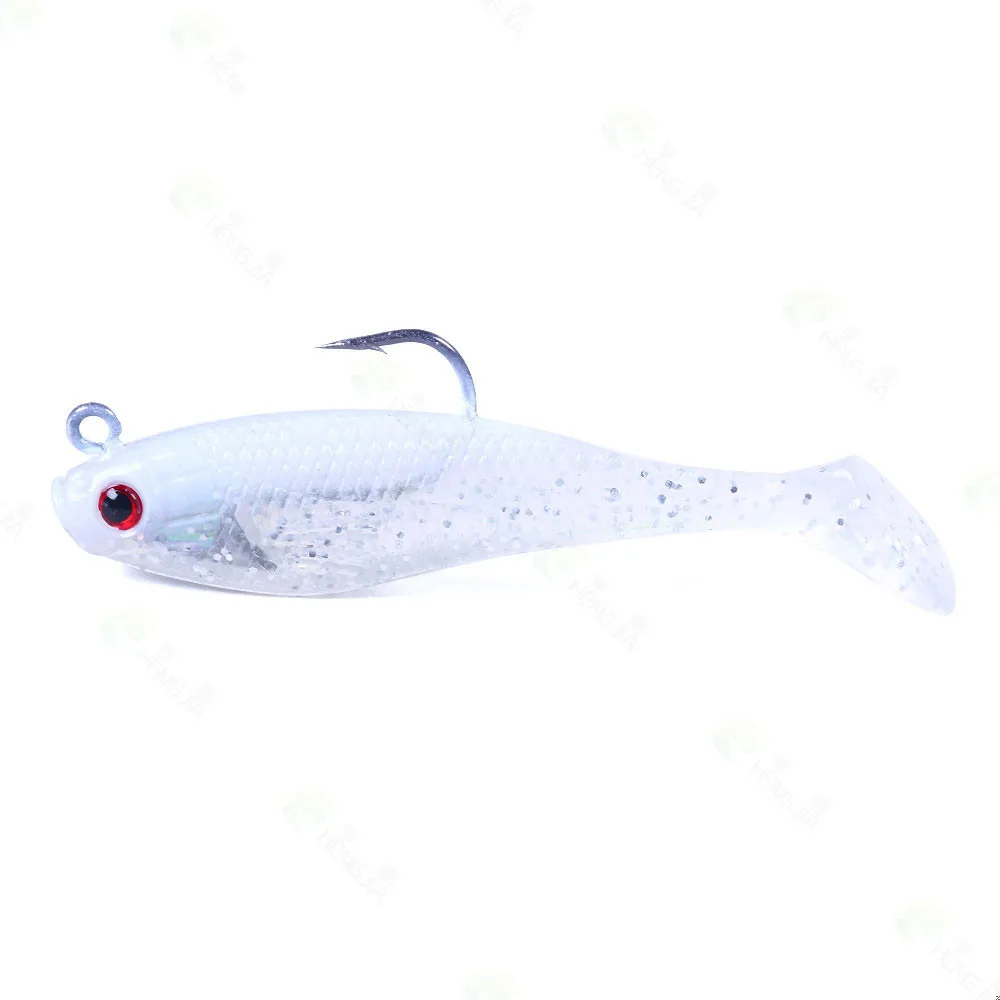 Señuelo de pesca de goma Artificial, cabeza de Jigs de pesca en el mar, cebo suave de silicona, Wobbler de cola en T, aparejos de pesca Swimbait, 80MM, 10g