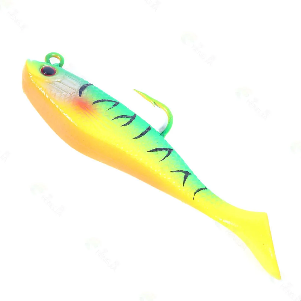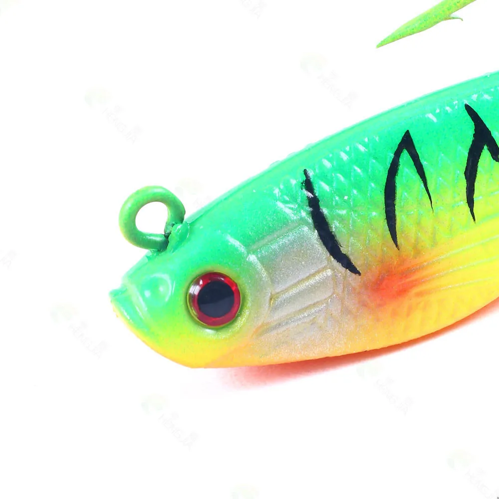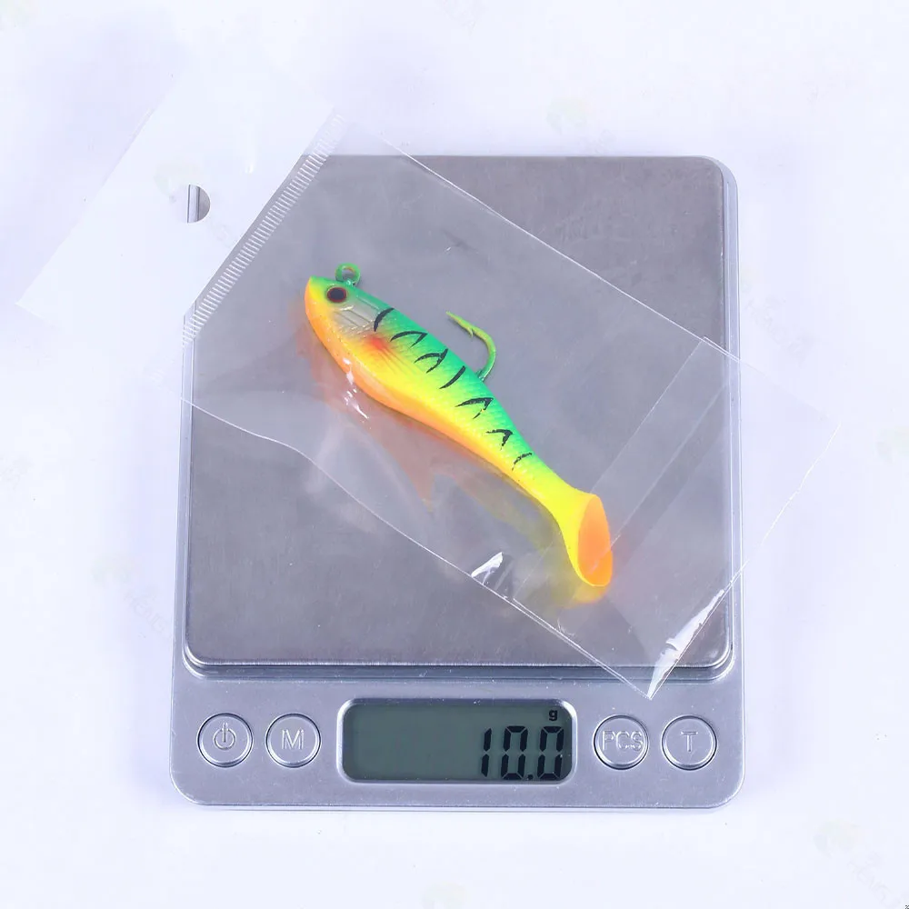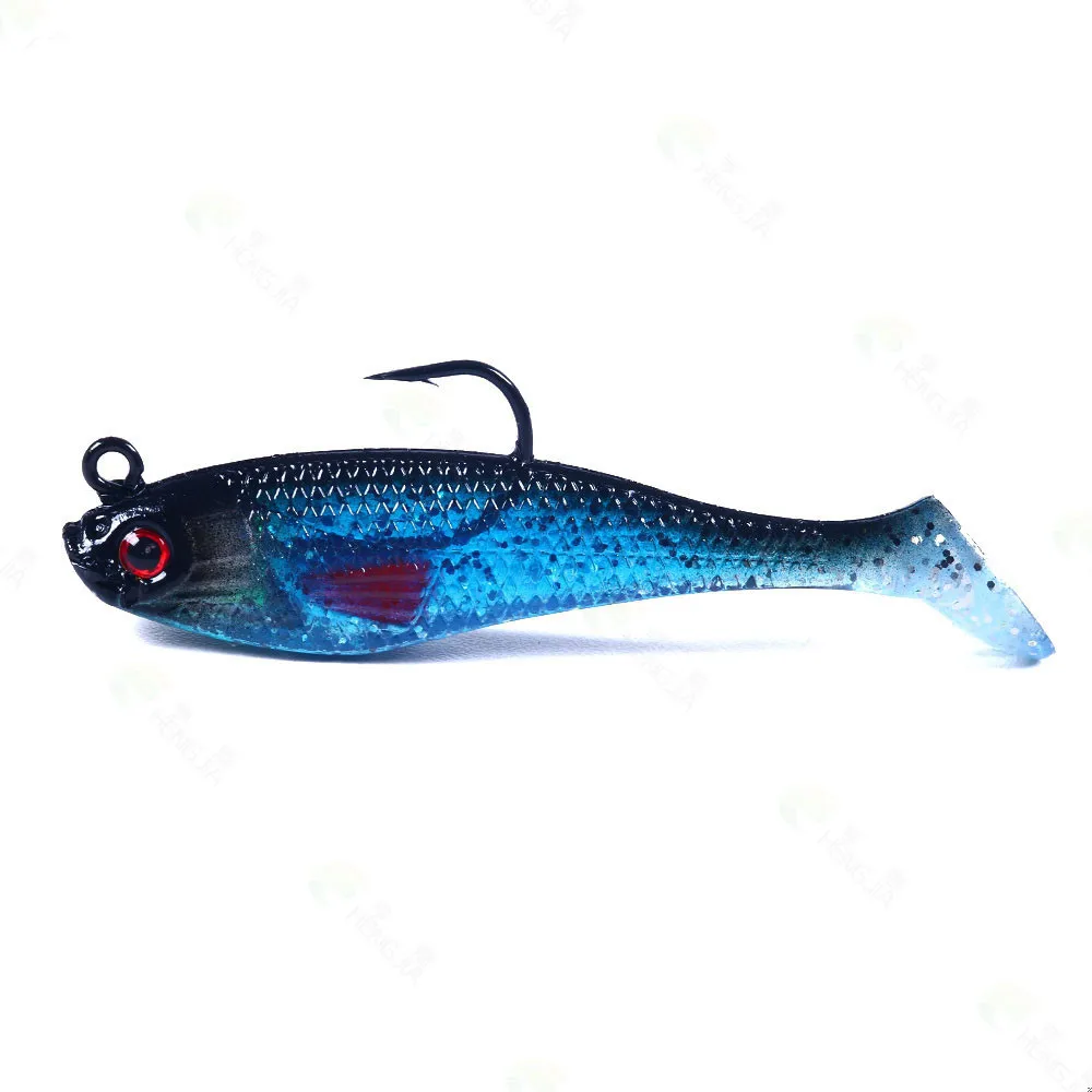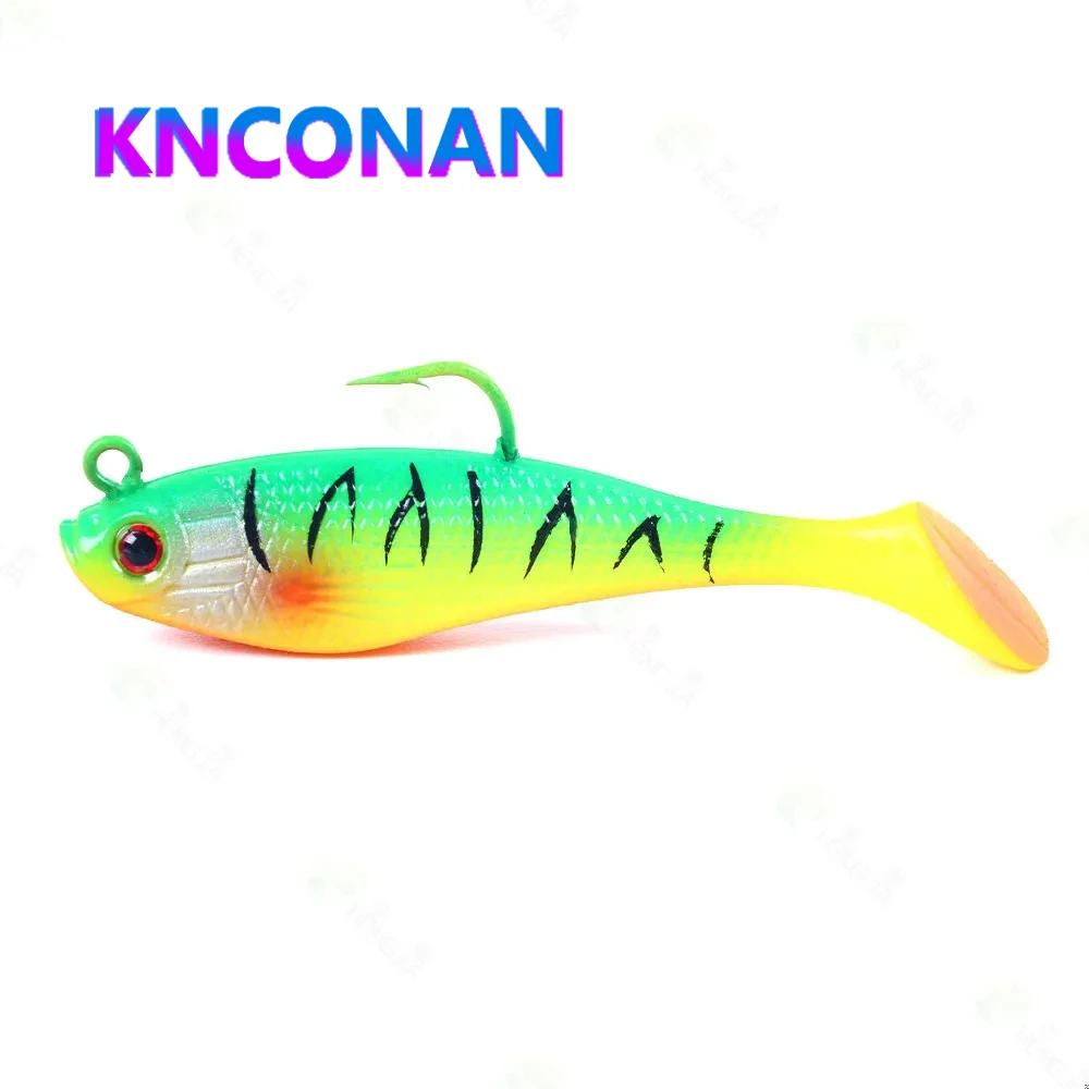 Señuelo de pesca de goma Artificial, cabeza de Jigs de pesca en el mar, cebo suave de silicona, Wobbler de cola en T, aparejos de pesca Swimbait, 80MM, 10g