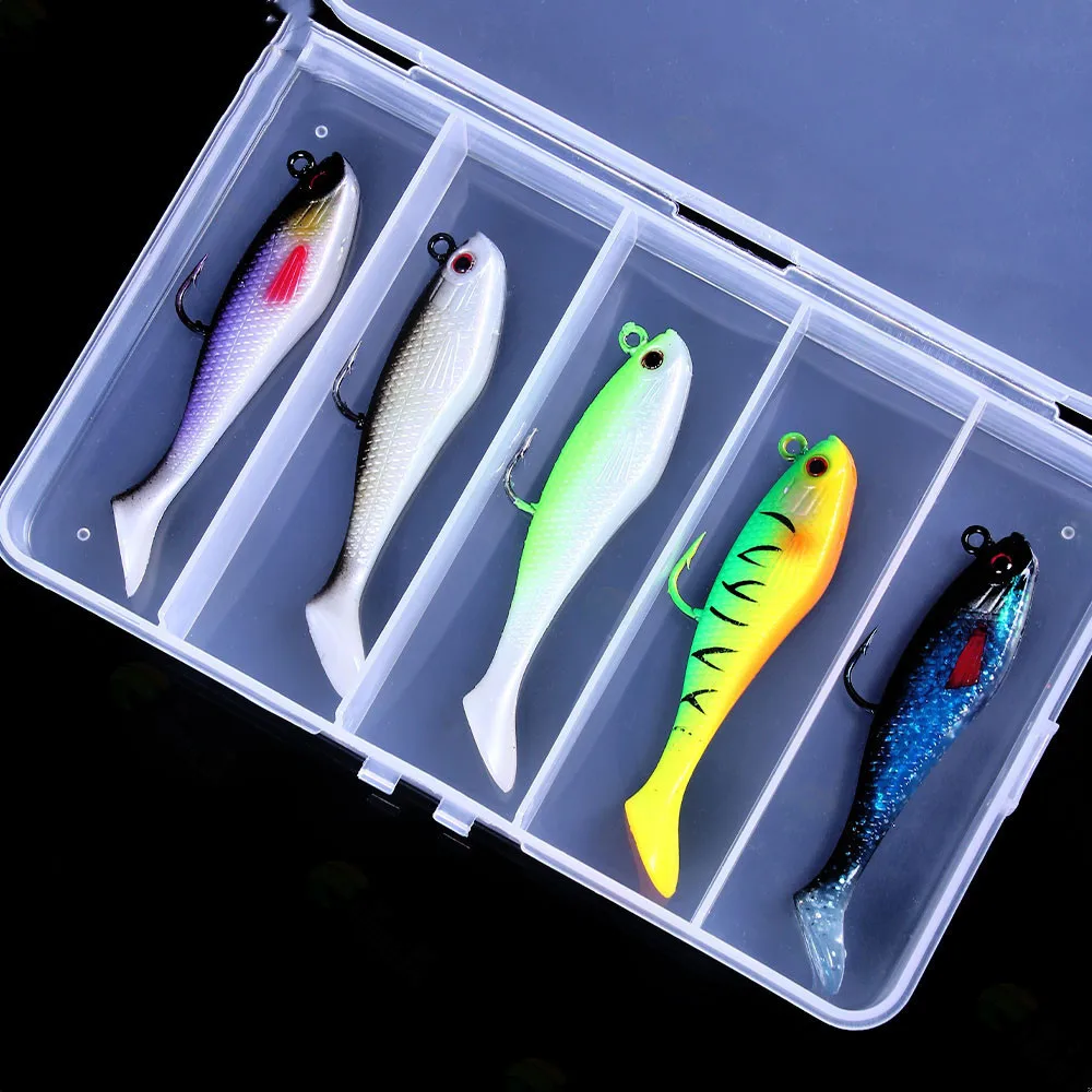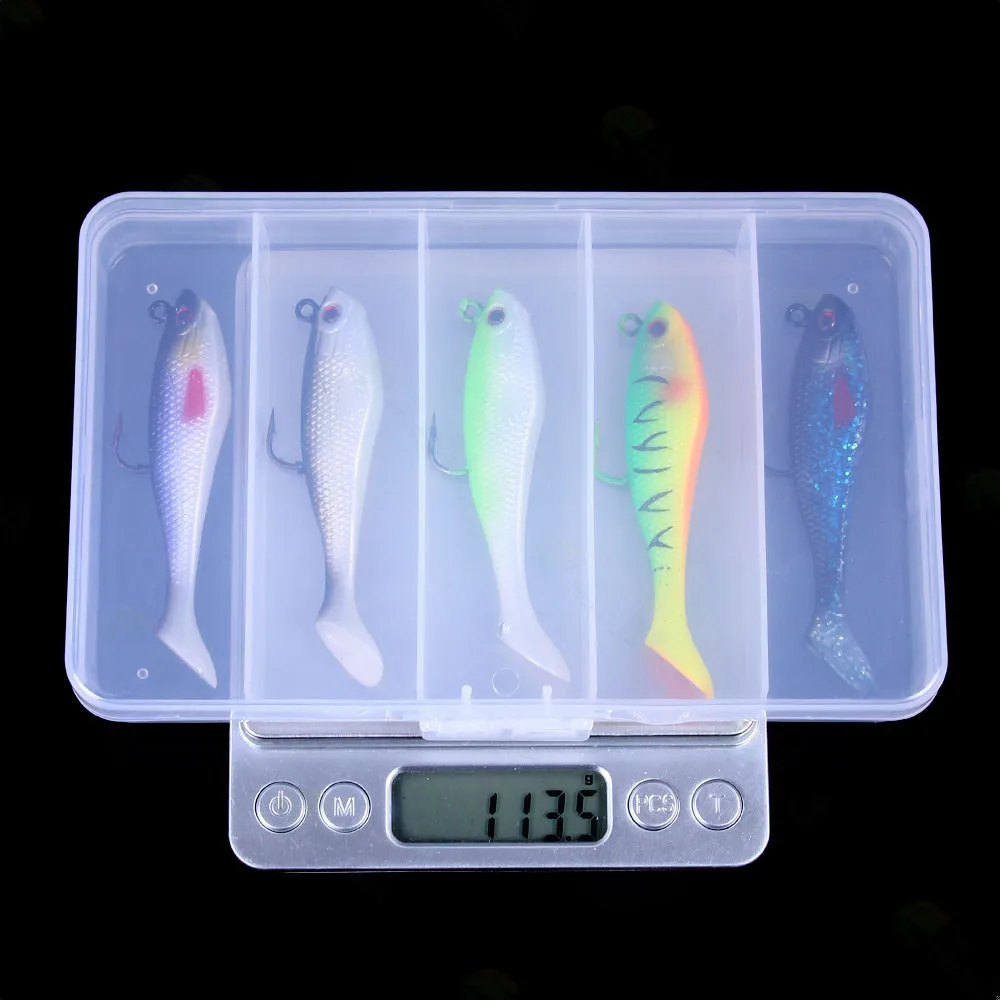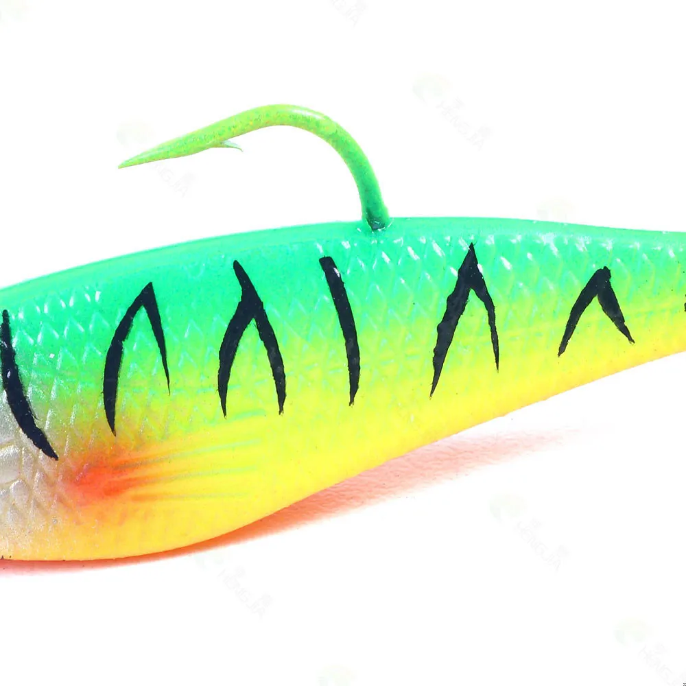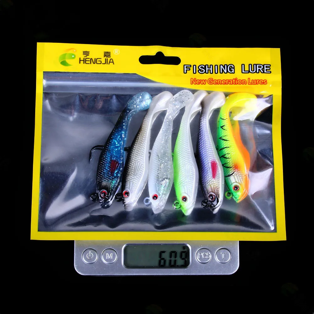 Señuelo de pesca de goma Artificial, cabeza de Jigs de pesca en el mar, cebo suave de silicona, Wobbler de cola en T, aparejos de pesca Swimbait, 80MM, 10g
