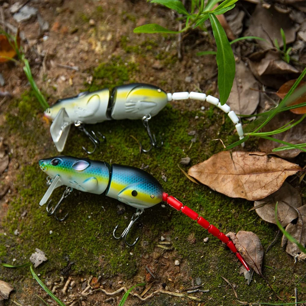 [Diseño creativo de sección rota y cola de múltiples secciones]: el diseño de sección rota y la cola de múltiples secciones hacen que los cebos para señuelos de rata nadando estilo gran columpio natación realista.Y también tiene una bola de acero incorporada, un centro de gravedad estable del sonido de la bola de contrapeso para atraer peces.Provocar fácilmente a los peces a morder.