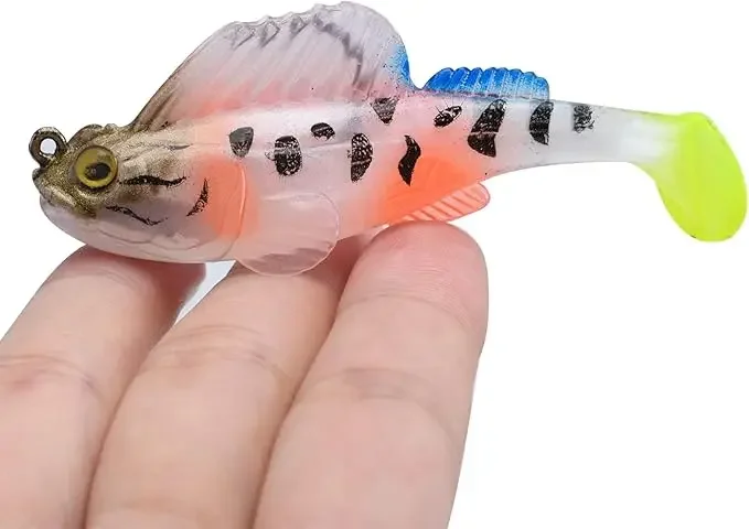 【Vientre suave】El diseño de bloque de plomo incorporado hace que el vientre de los swimbaits pre-equipados sea suave, y el anzuelo de cabeza de plomo incorporado mantiene bajo el centro de gravedad del cebo blando mientras aterriza sin inclinarse.