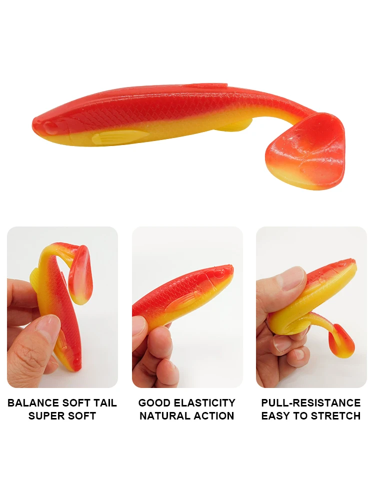 Señuelo de pesca grande, cola en T, swimbait, pesca de Lucio, cola blanqueada, cebo de silicona de 125mm