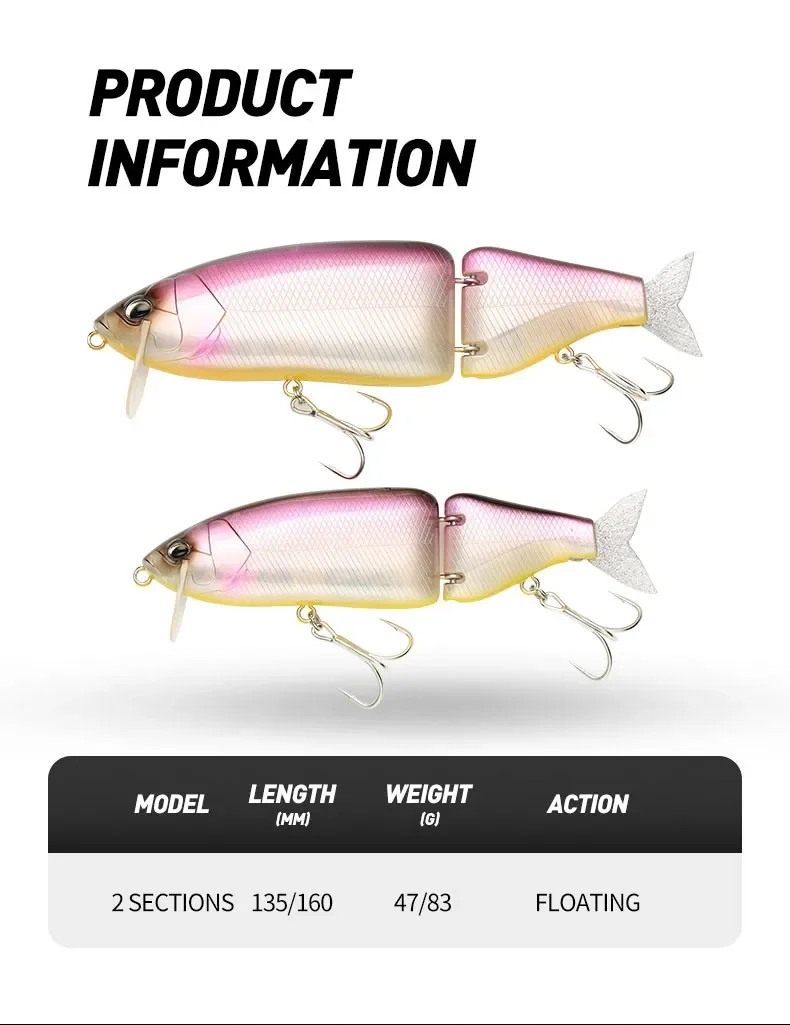 • Diseño de articulación :El diseño de articulación de este Señuelo de Pesca permite una movimiento natural en el agua, imitando a la perfección a los peces reales.
