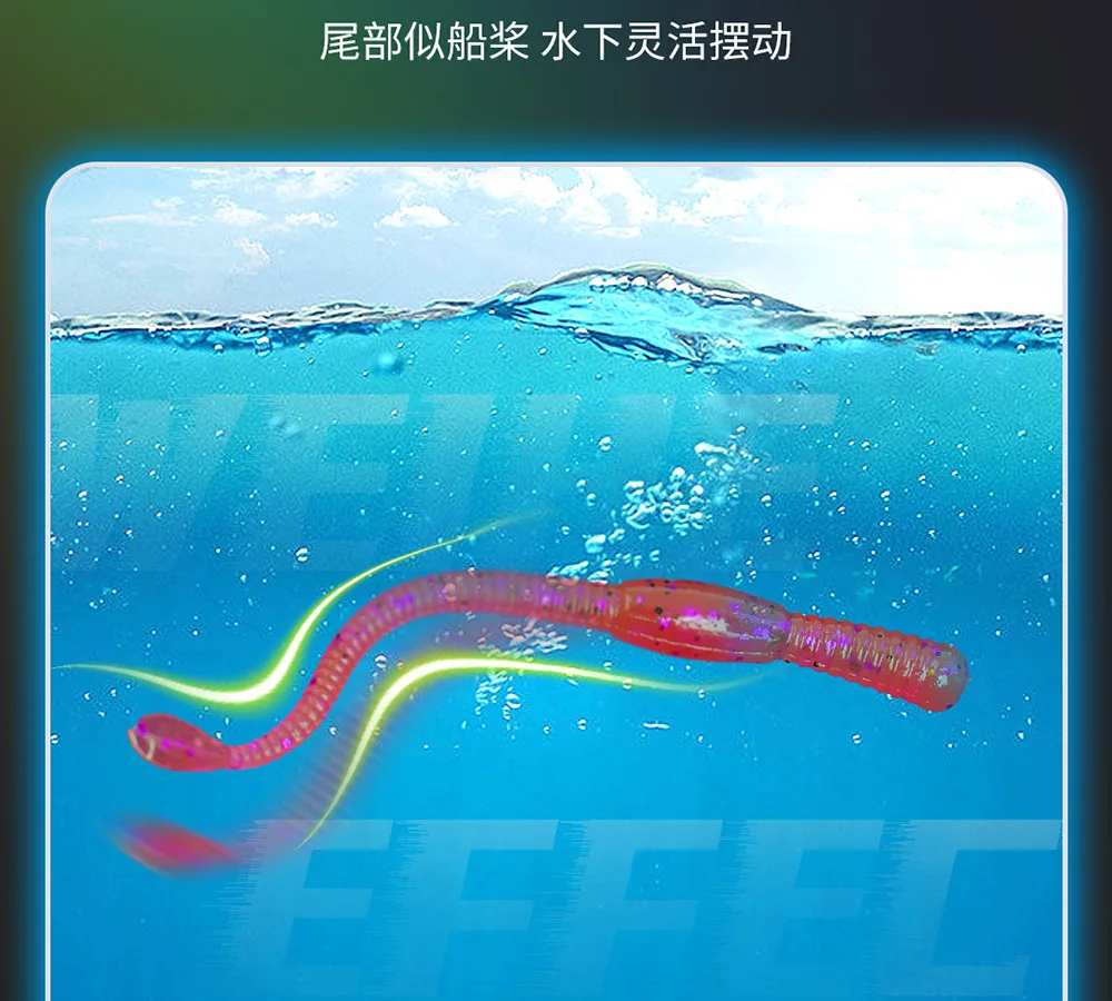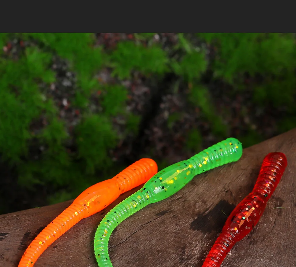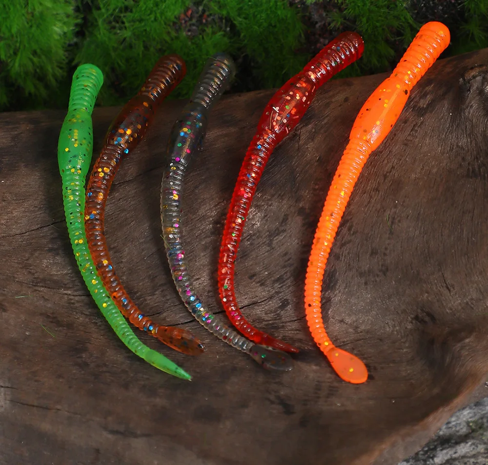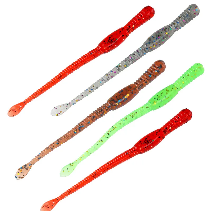 Señuelo de pesca de gusano de cola larga, cebo suave de 7cm, Texas Rig Drop-Shot Rig, Jig Head, Blink, lentejuelas Grub, señuelos artificiales, lote de 10 piezas, venta