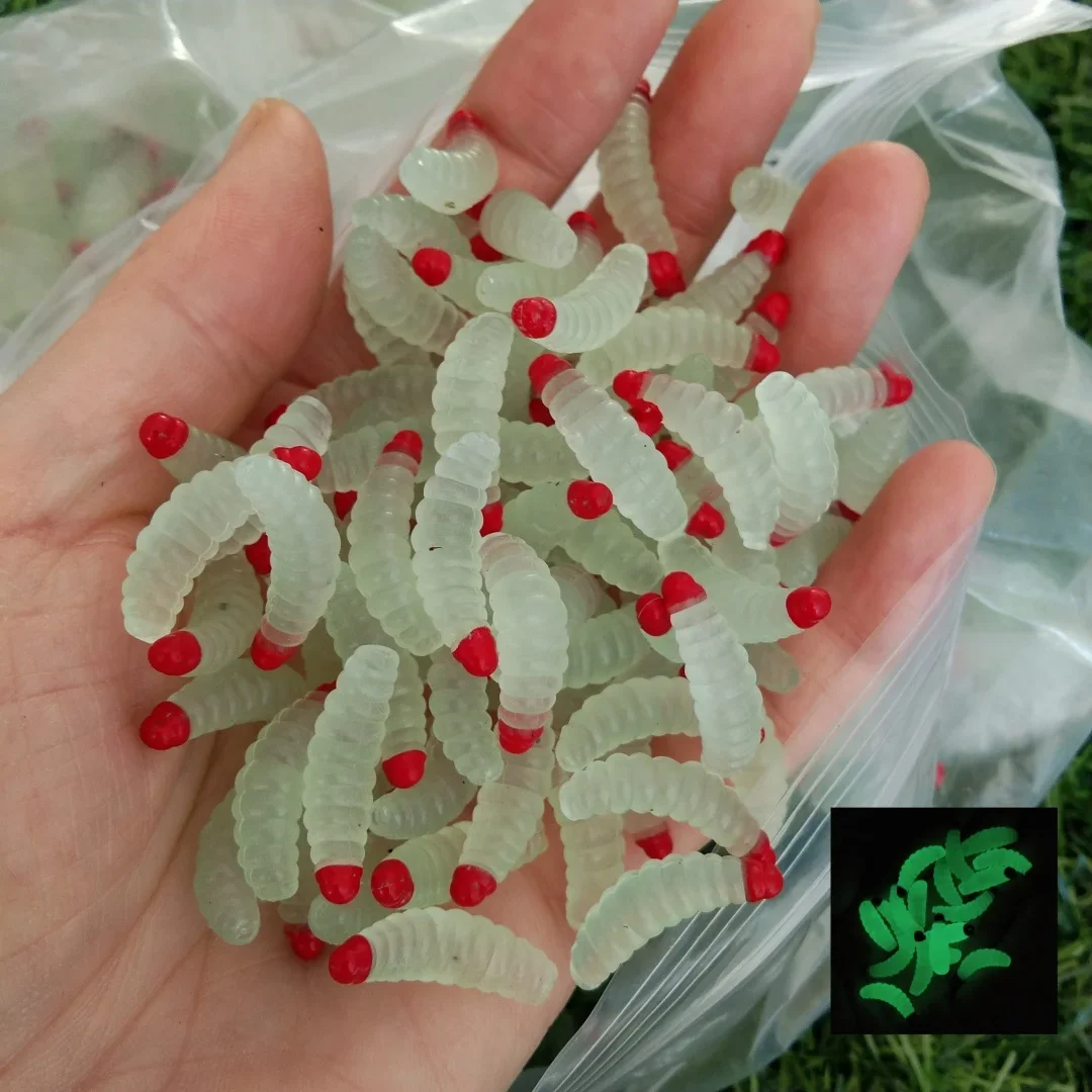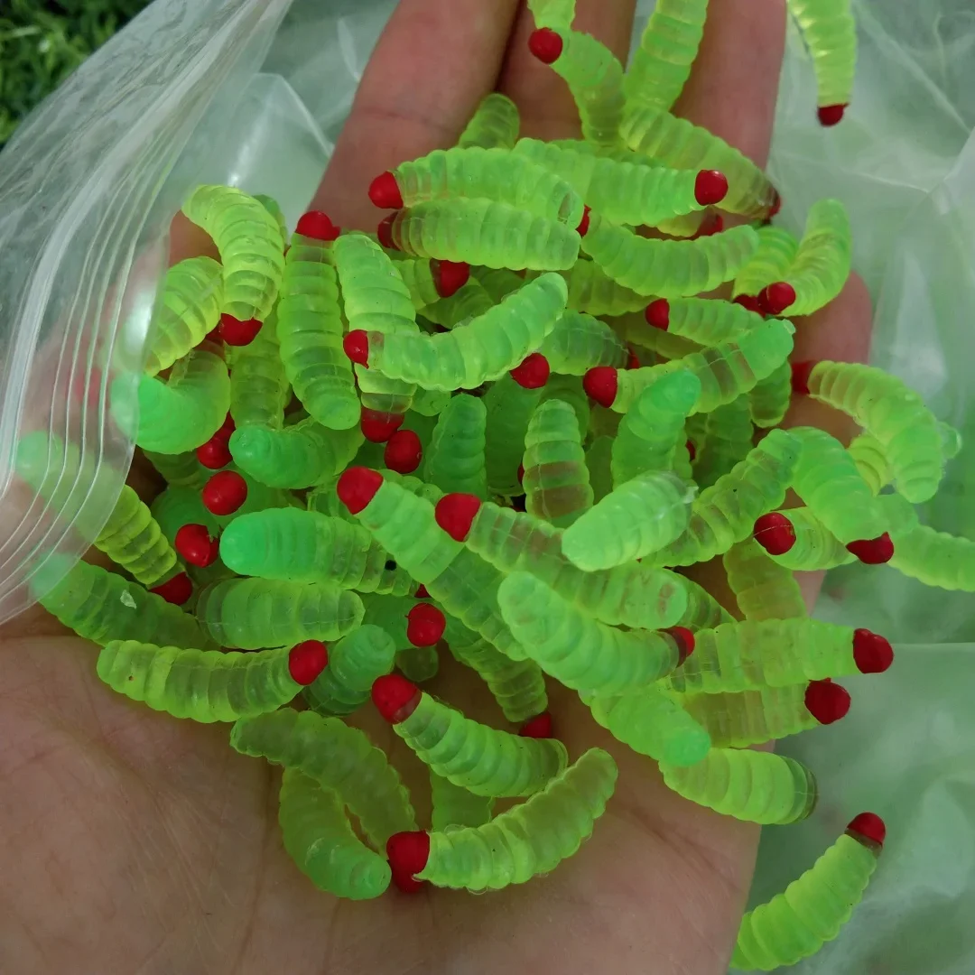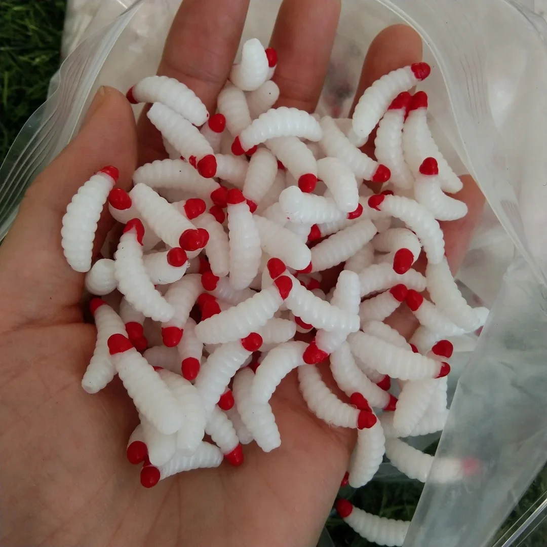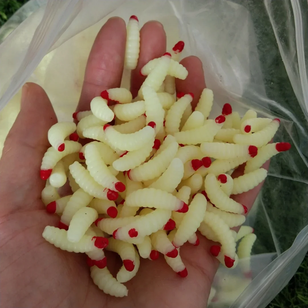 Señuelo de pesca gusano larva amarillo realista señuelo de pesca pan biónico insecto suave anzuelos de señuelo de pesca olor gusanos brillo