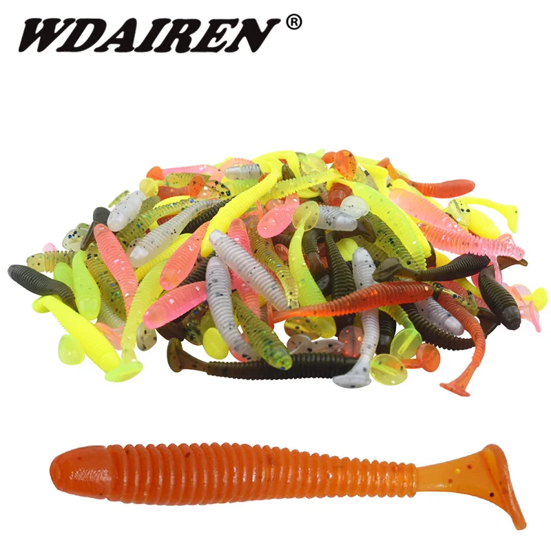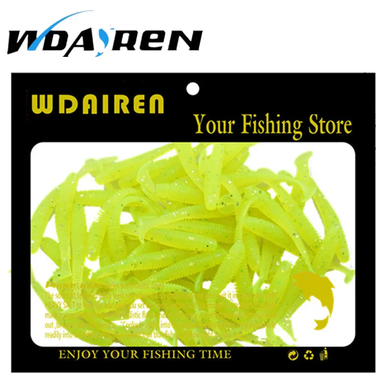 50 Uds. Señuelo suave de gusano señuelo de pesca 0,7g 47mm Swimbait Wobblers cebo de cola en T de silicona Artificial Leurre Souple Shad aparejos de pesca