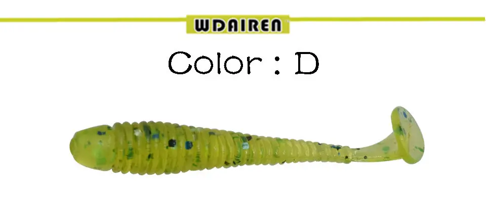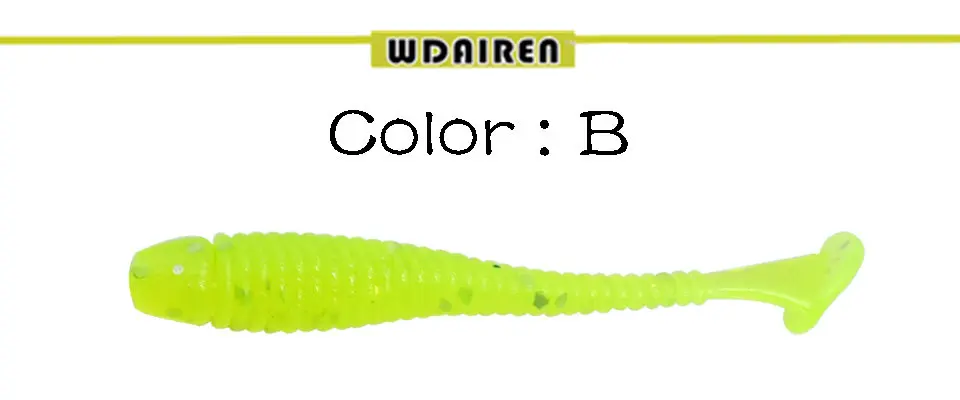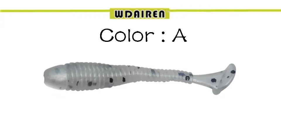Marca: WDAIRENTipo de señuelo: señuelo blando con cola en TLongitud: 45 mmPeso: 0,7 gColor: 10 colores diferentesMaterial: silicona/cauchoEmbalaje: Bolsa especial de cebo blando WDAIRENlista de embalaje:50 * señuelo blando