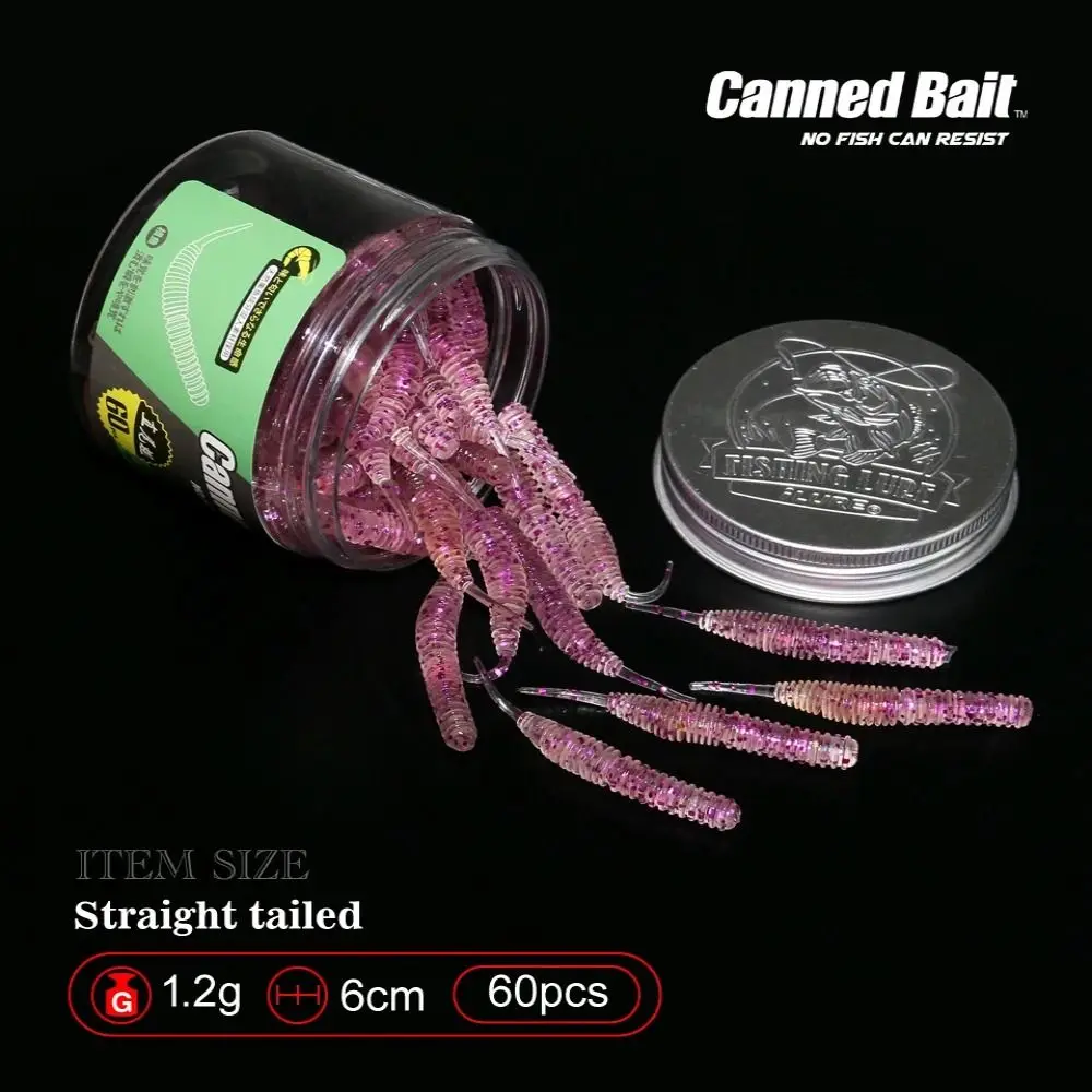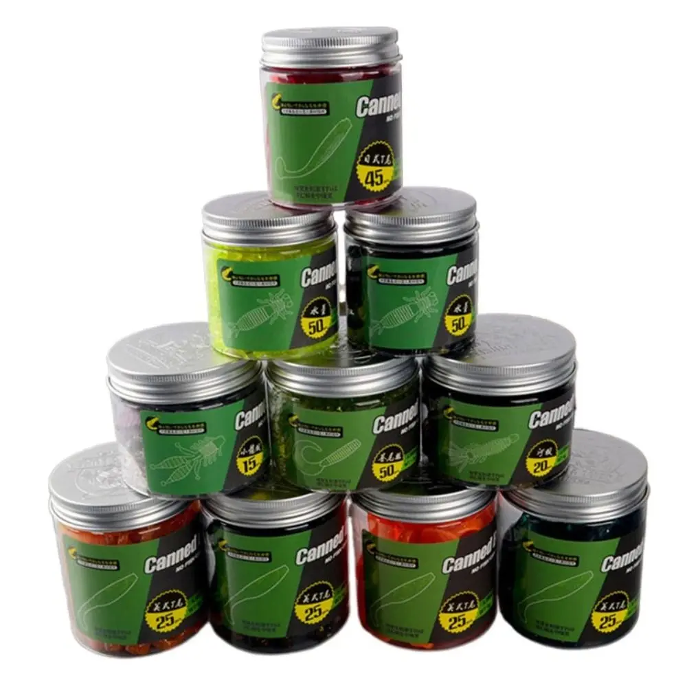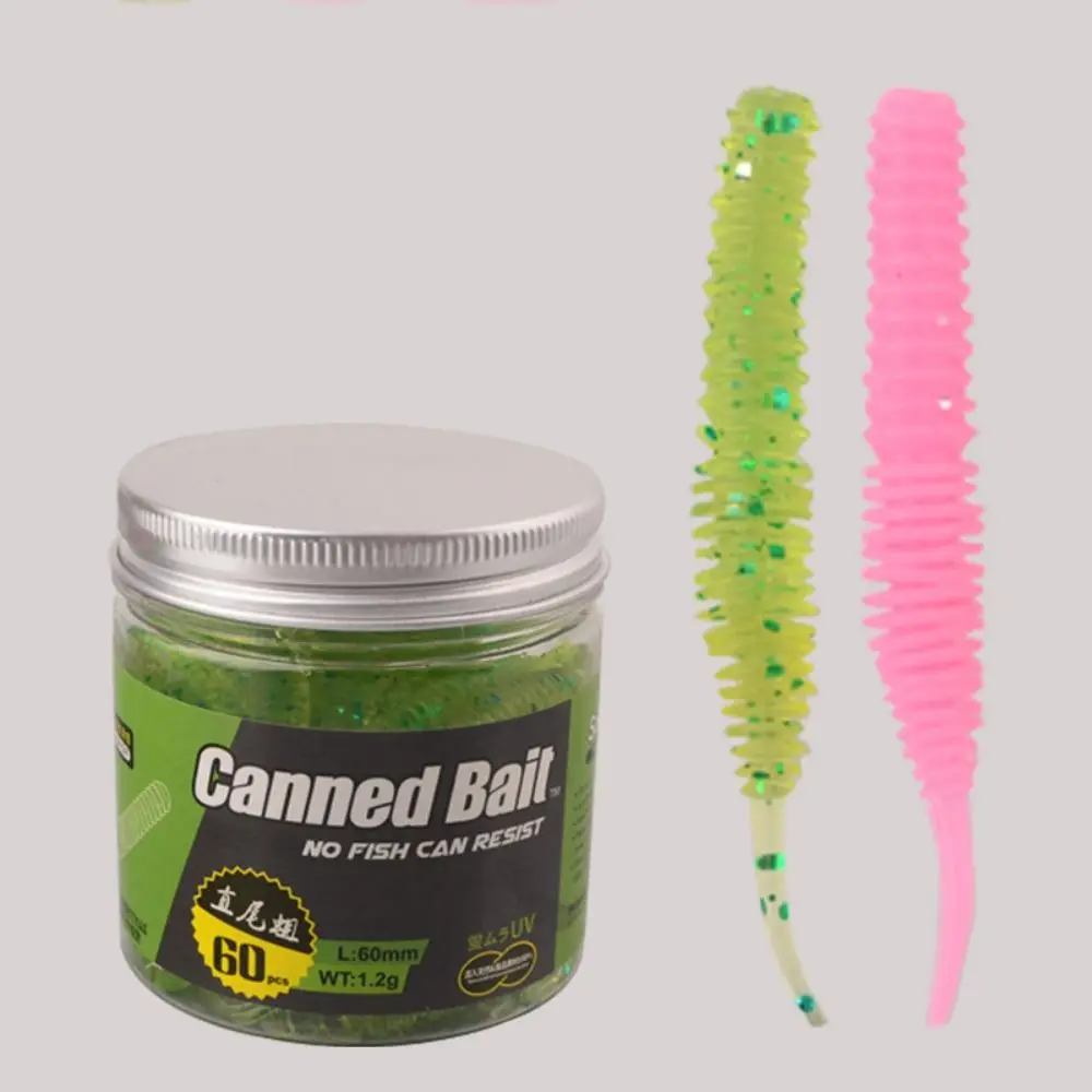 Colores: 5 colores cantidad: 60 unids/lote Peso: G 1,2 Material: plástico/silicona Longitud: 6cm (2,36 pulgadas) Tipo: olor a pescado/olor a Camarón embalaje: cilíndrica Características botella de plástico: 1. Señuelo muy realista y natural, pez más atractivo. 2. Excelente acción de natación en el agua, con una acción de flanqueo nervioso perfecta, aroma de pez fuerte más vivo y atractivo para los peces objetivo. 3. Uso de material plástico ecológico, reutilizable y de conservación a largo plazo.