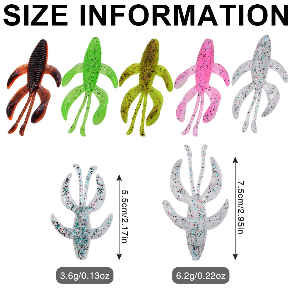 30 Uds de señuelo de pesca de langosta de gusano blando de silicona de 3,2g/6,2g, cebo de Camarón, lagartos, señuelos, Wobbler Jig flotador, equipo para pesca de Carolina