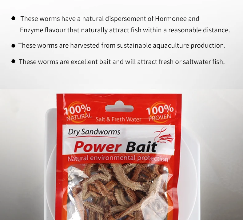 Señuelo de pesca de gusanos de arena secos 100% naturales, agua dulce salada, 6g, 10g, gusano muerto, olor a pescado, cebo de pesca de gusanos