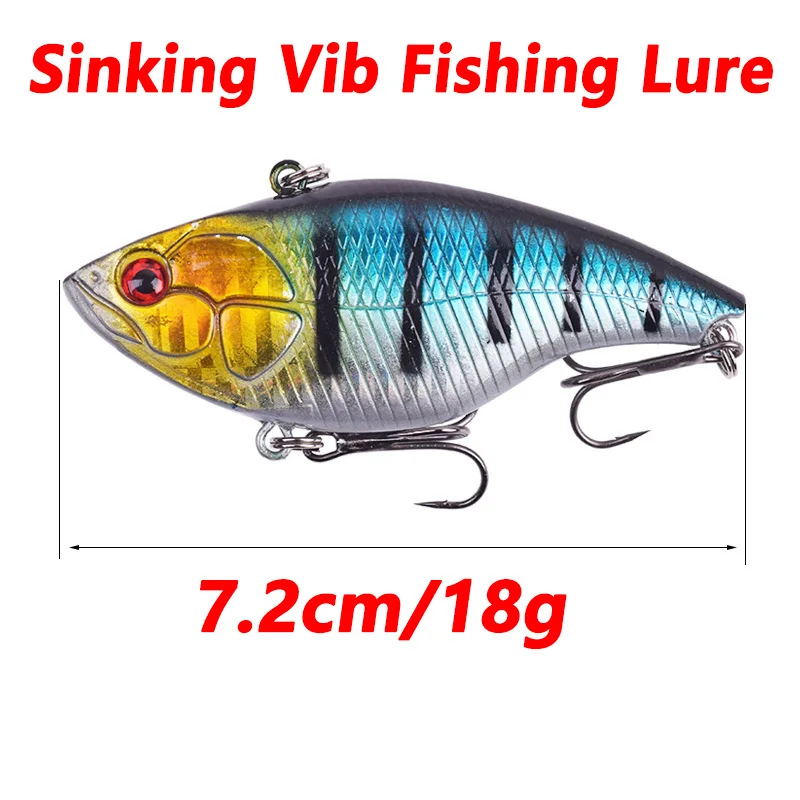 1 Uds. Señuelo de pesca que se hunde por vibración 7,2cm 18g VIB Trolling Wobblers aparejos de pesca de invierno ganchos triples cebo Artificial para lubina