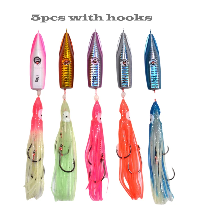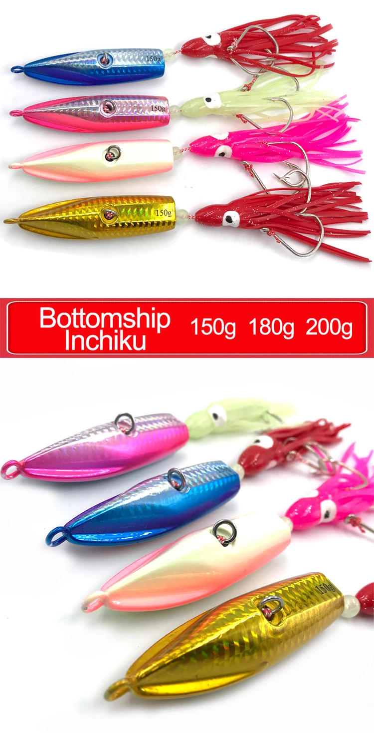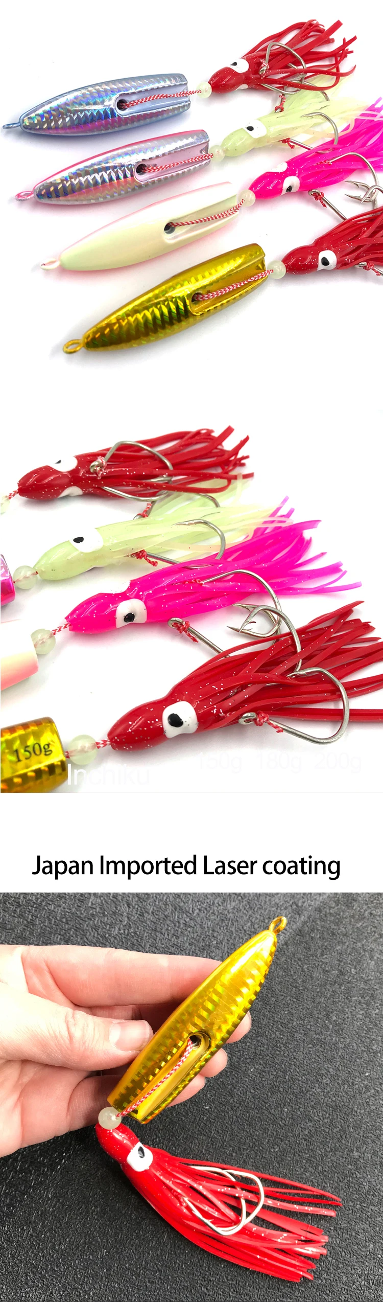 Señuelo de pesca de hundimiento lento, anzuelo de calamar Inchiku de 150g, 180g, 200g, 5 unidades