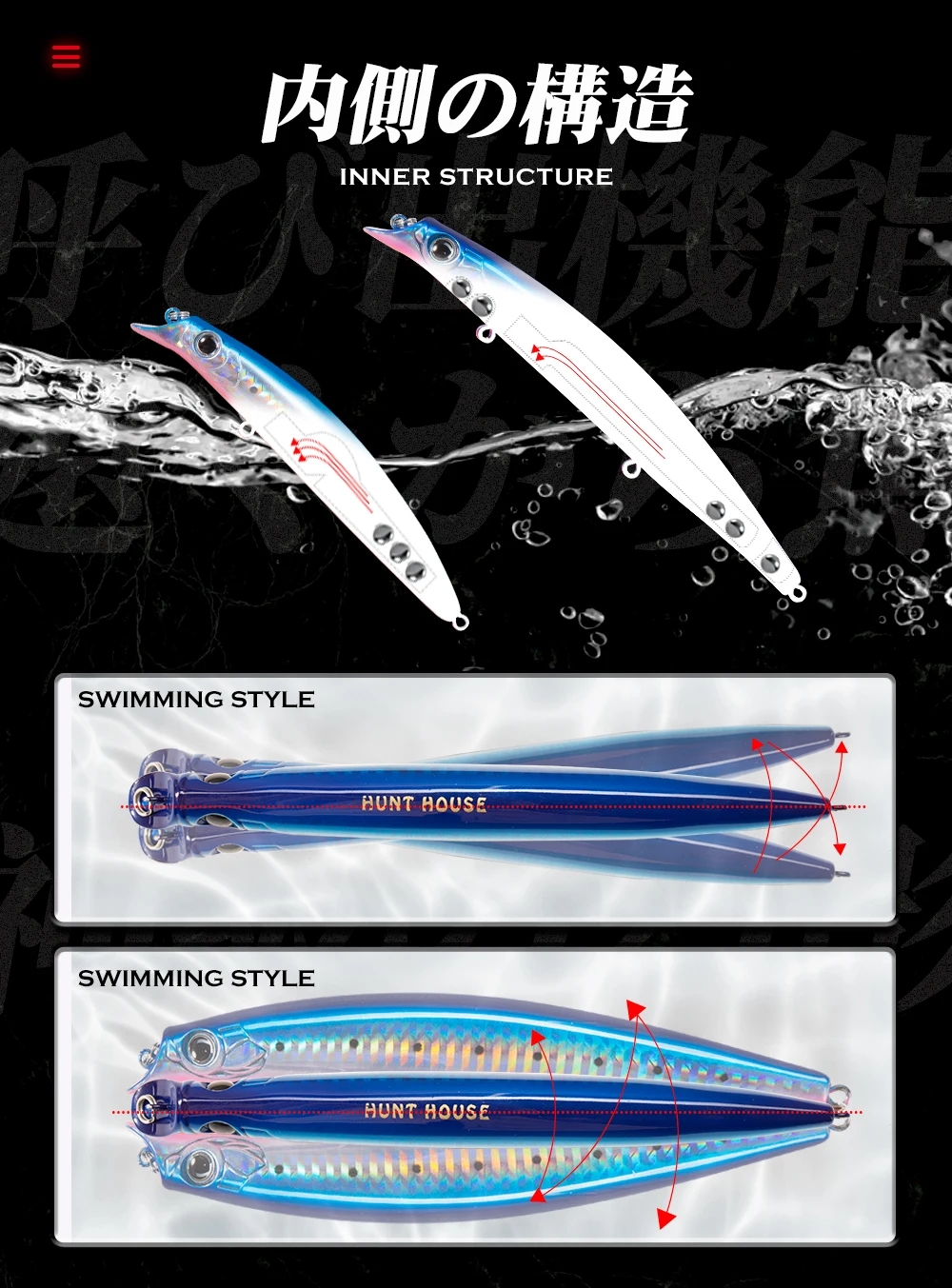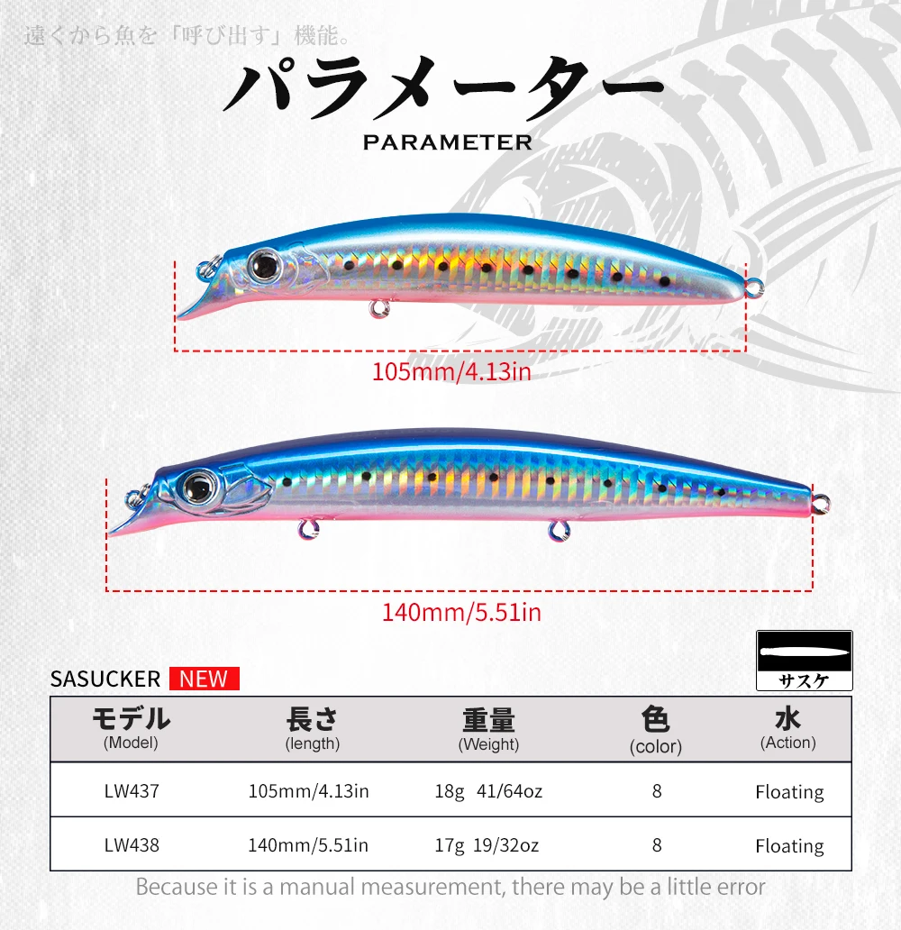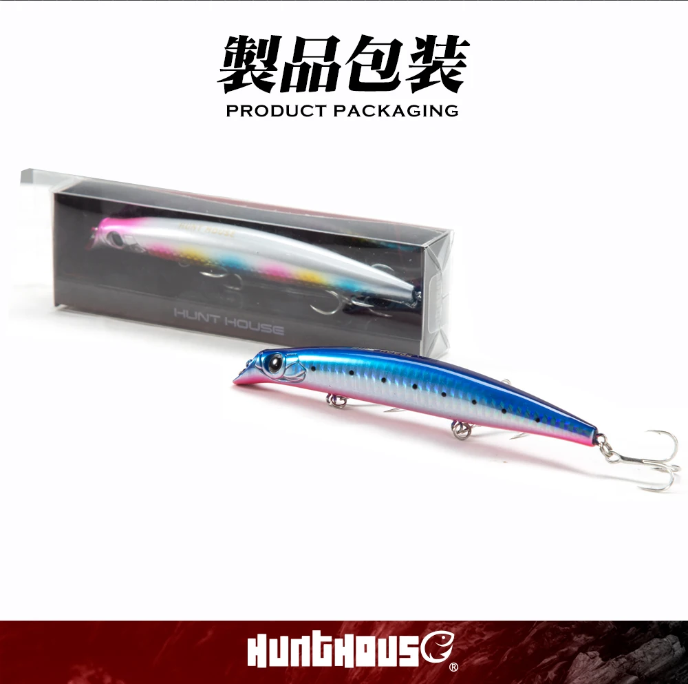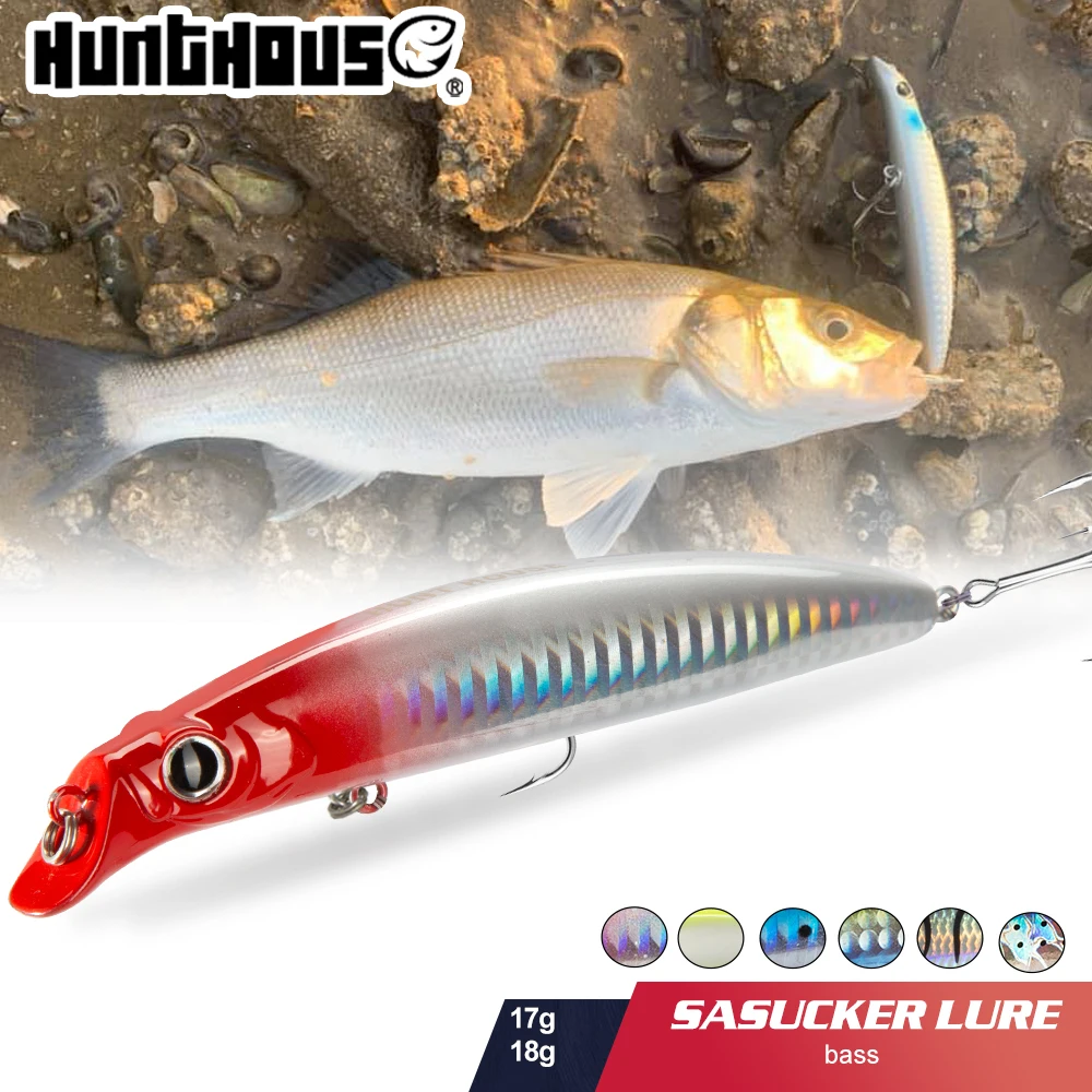 Señuelo de pesca Hunthouse Minnow 105mm/18g 140mm/17g Sasuck cebo sin labios lápiz Jerkbait Wobbler flotante para lubina Artificial