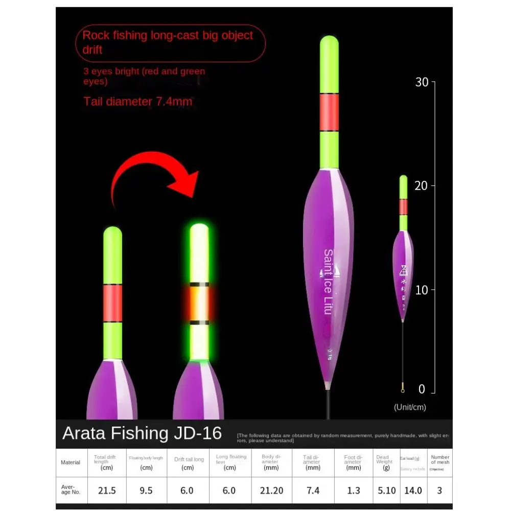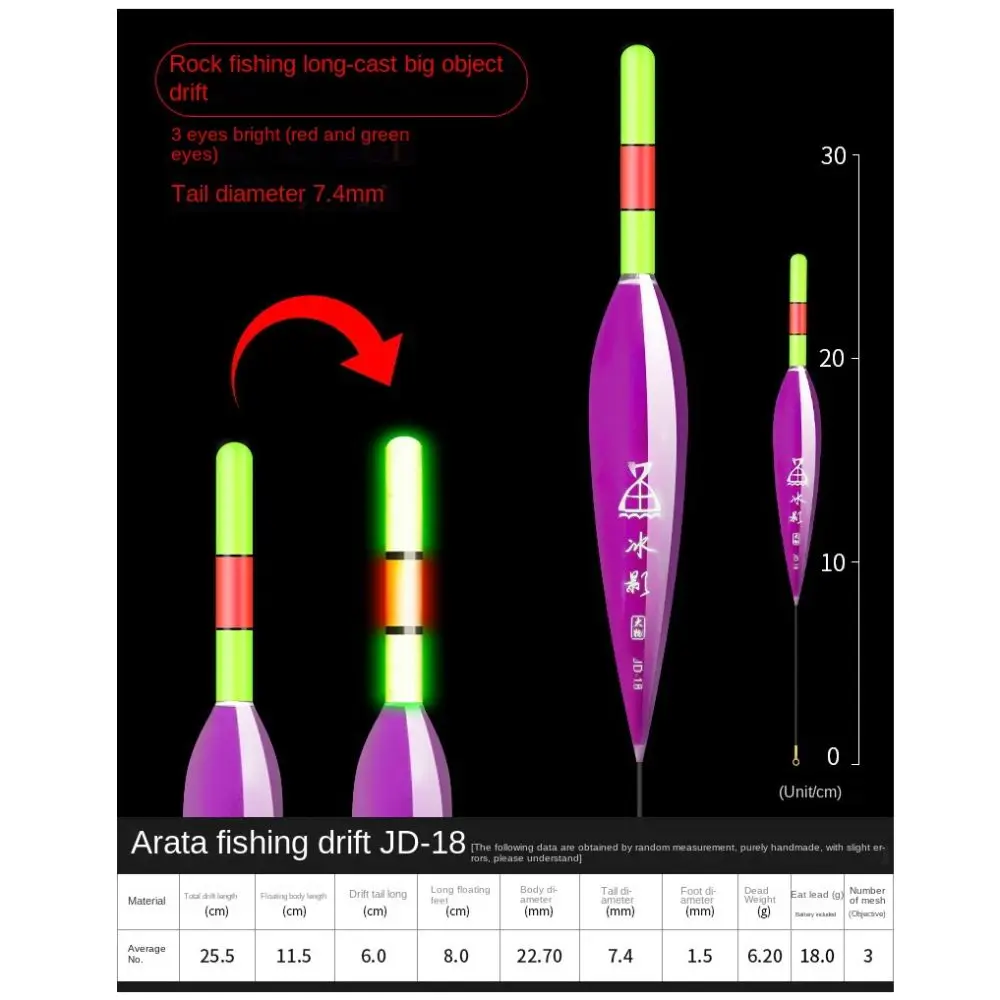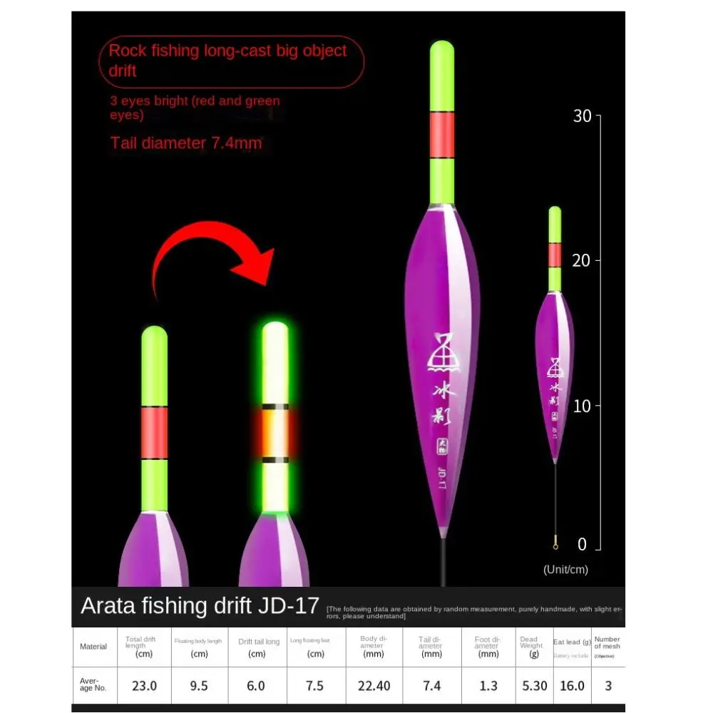 Nombre del producto: 2024 Aparejos de pesca Flotador Marca del producto: No Característica: La parte superior es más audaz y llamativa Con respecto al embalaje: utilizamos tubos duros de plástico ABS de alta resistencia para garantizar una entrega segura Estilo: 10 ESTILO Longitud: 15cm(5.91in)-25cm(9.84in) Paquete incluido 1PC 3 luces Flotador de pesca con batería CR425
