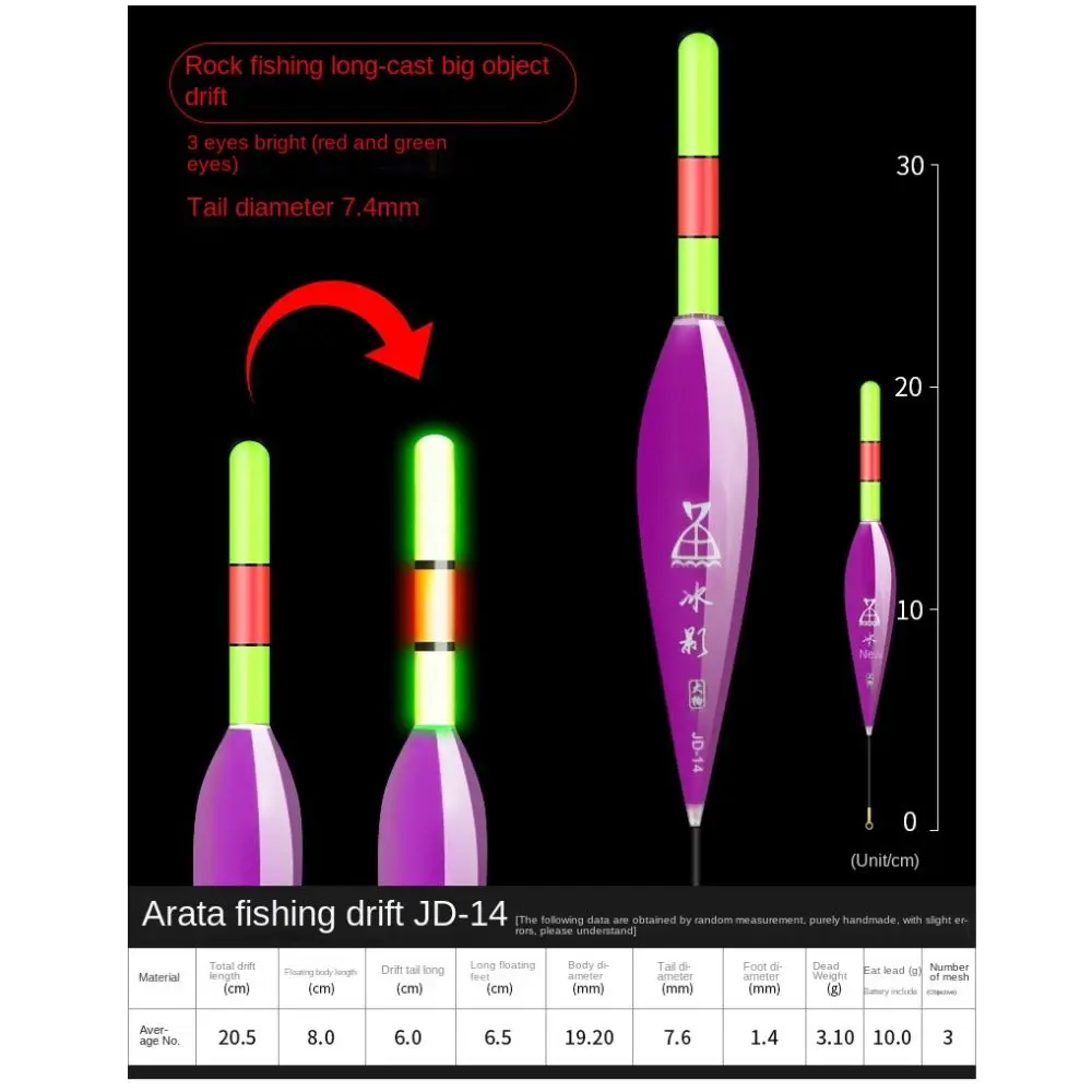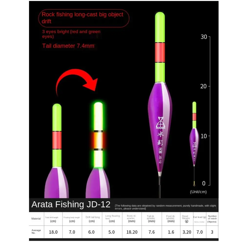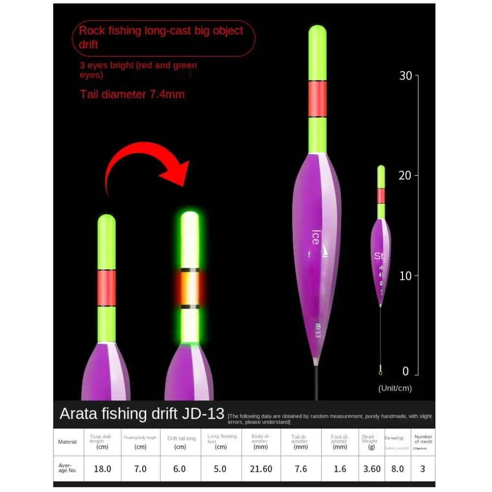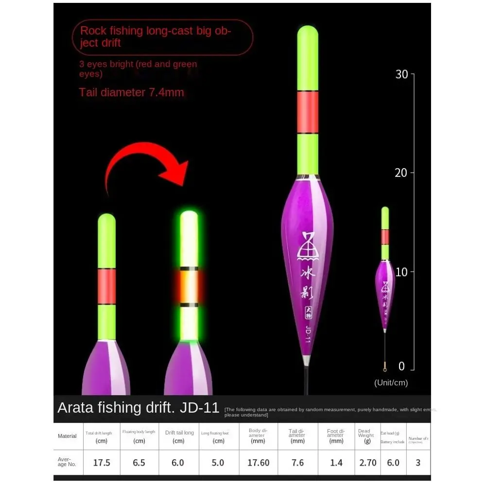Nombre del producto: 2024 Aparejos de pesca Flotador Marca del producto: No Característica: La parte superior es más audaz y llamativa Con respecto al embalaje: utilizamos tubos duros de plástico ABS de alta resistencia para garantizar una entrega segura Estilo: 10 ESTILO Longitud: 15cm(5.91in)-25cm(9.84in) Paquete incluido 1PC 3 luces Flotador de pesca con batería CR425