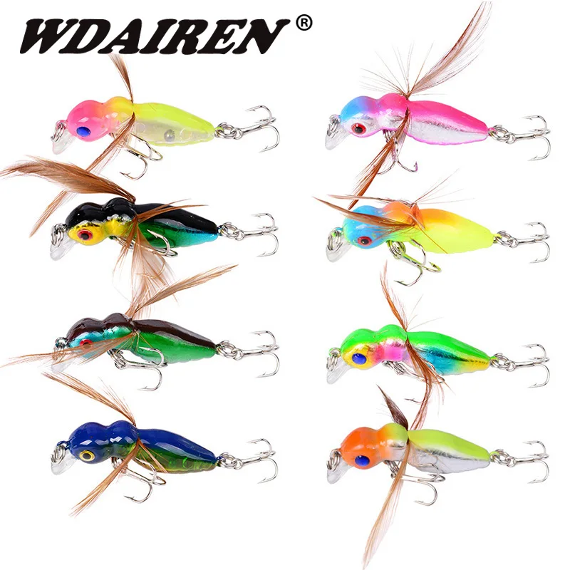 1 pieza de señuelo de pesca de insectos de plumas 45mm 3,5g Wobbler Minnow cebo duro Artificial con anzuelos Crankbait Swimbait aparejo