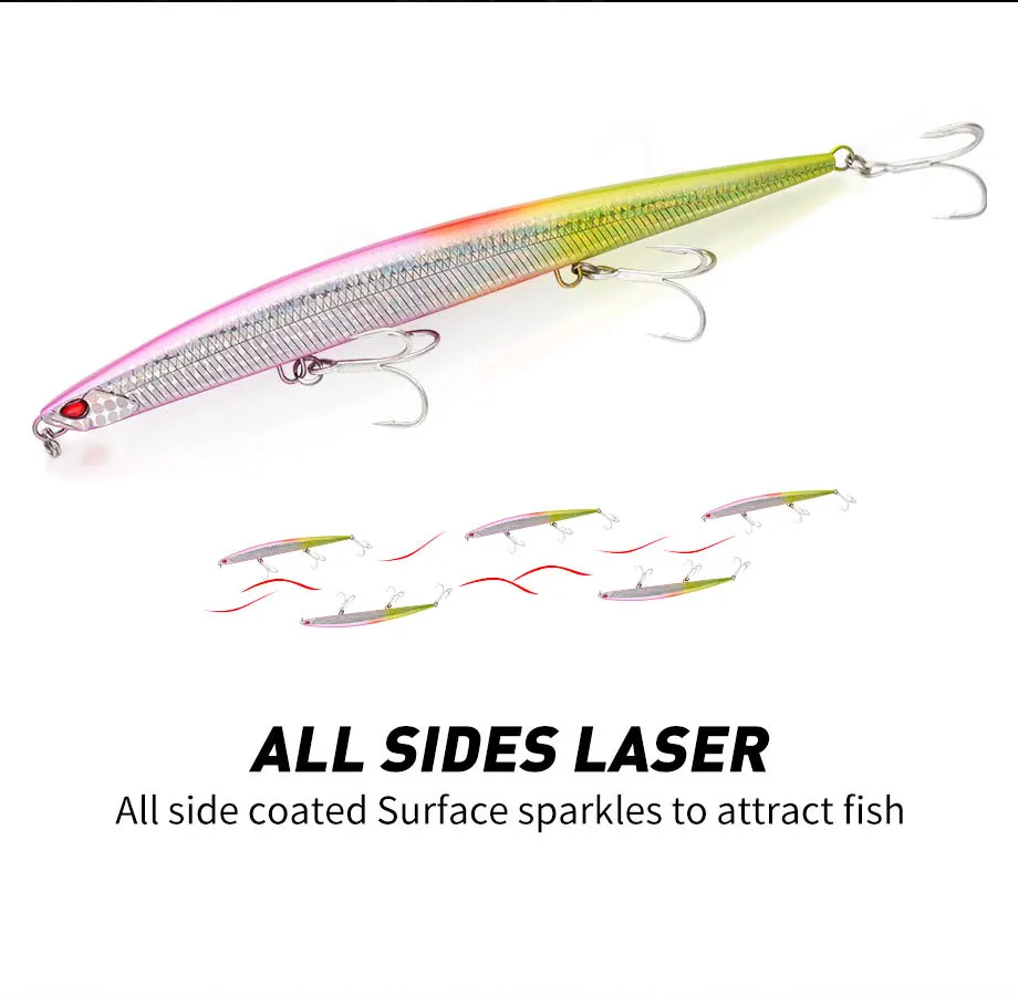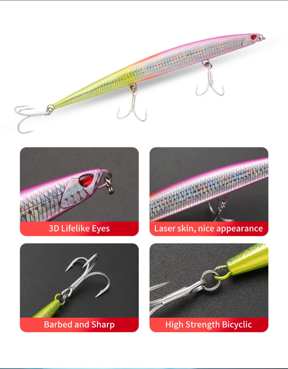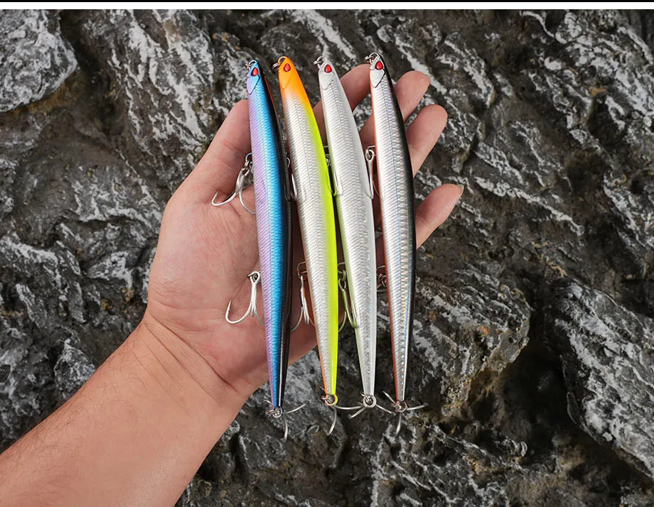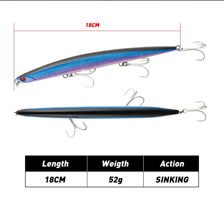 Señuelo de pesca Jerkbait de pececillo de hundimiento pesado, 180mm, 52G, aparejos de cebo de lubina de agua salada y tierra