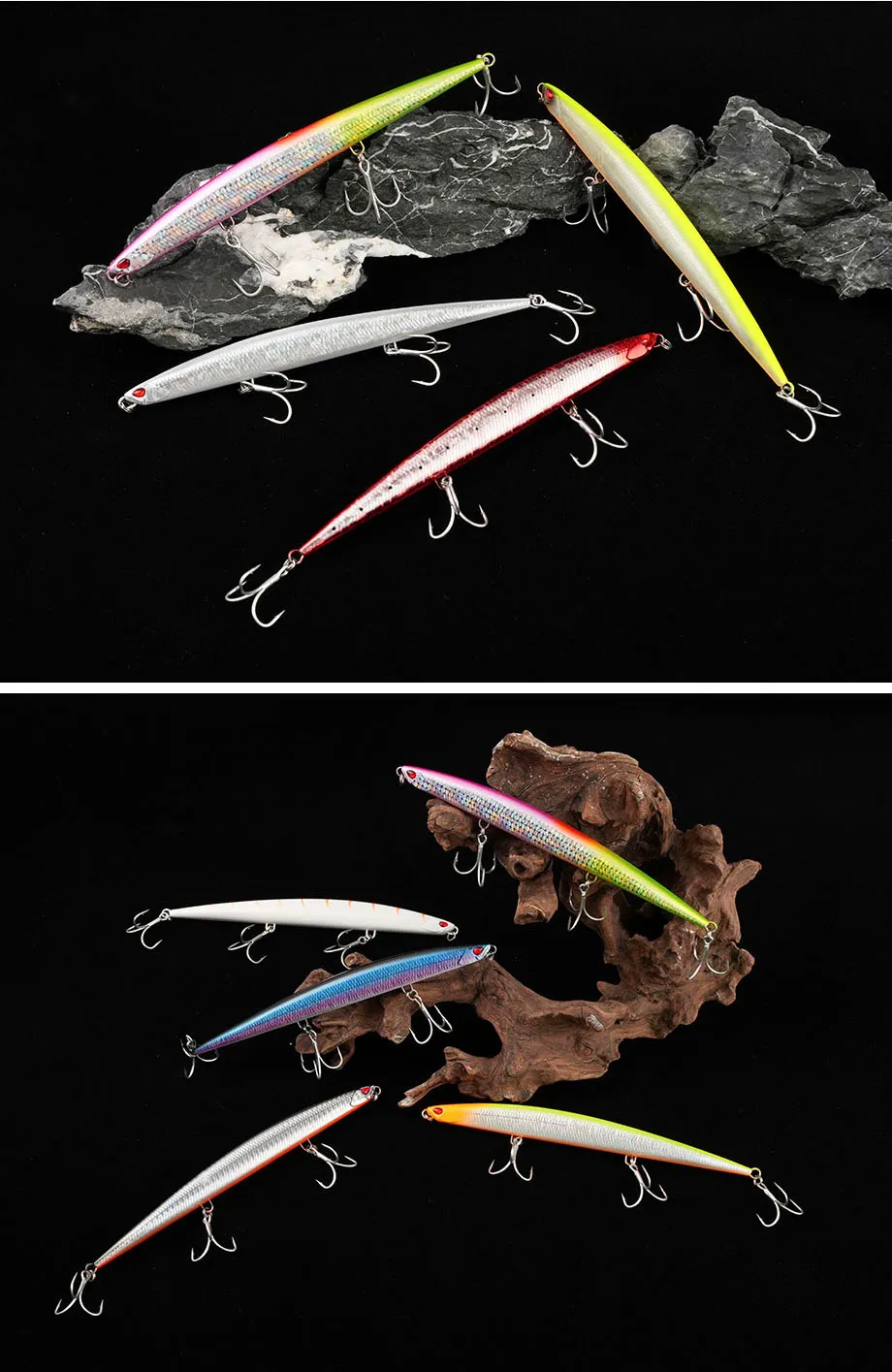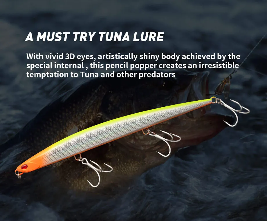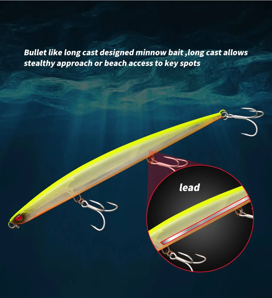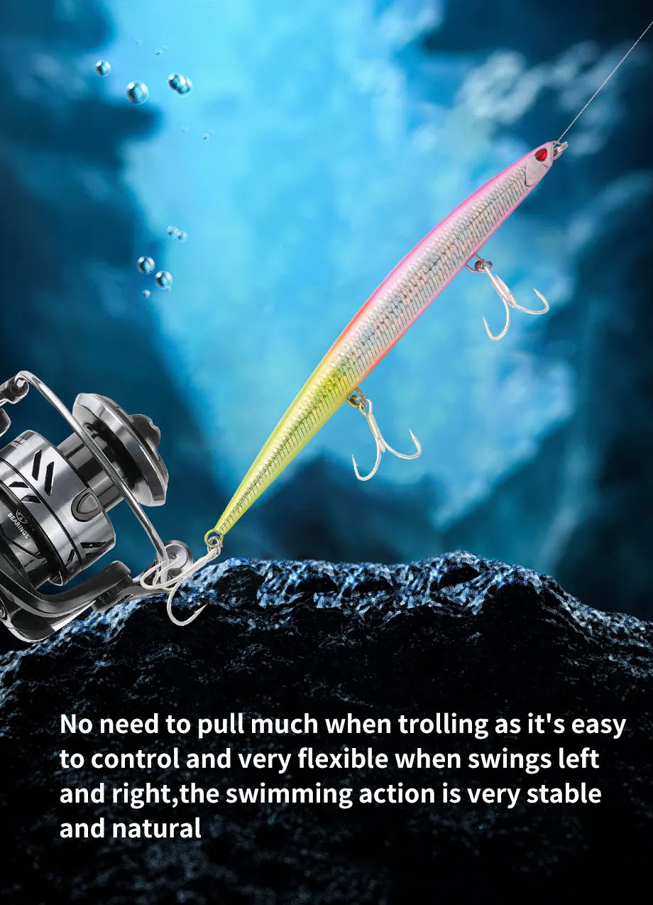 Señuelo de pesca Jerkbait de pececillo de hundimiento pesado, 180mm, 52G, aparejos de cebo de lubina de agua salada y tierra