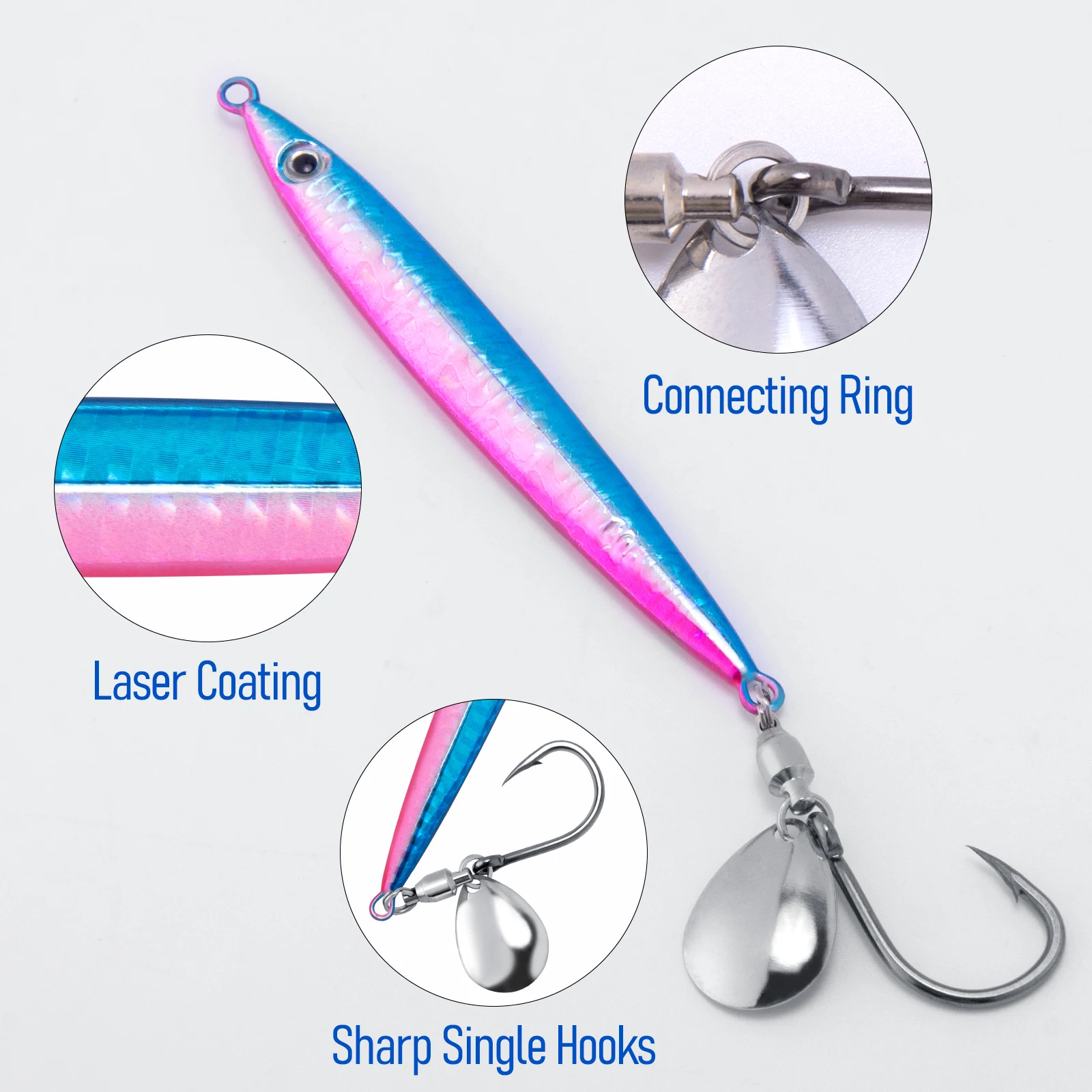 High quality:They all feature a unique design and pattern with impressively life-like holographic colours. These colours give an amazing iridescence and shine that really catches the attention of lurking fish.