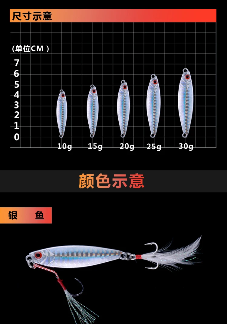 Señuelo de pesca Jigbait, señuelos artificiales de Metal fundido largo, plantillas láser, captura de lubina, caballa, anzuelo afilado de calidad de 10g-30g, 1 pieza