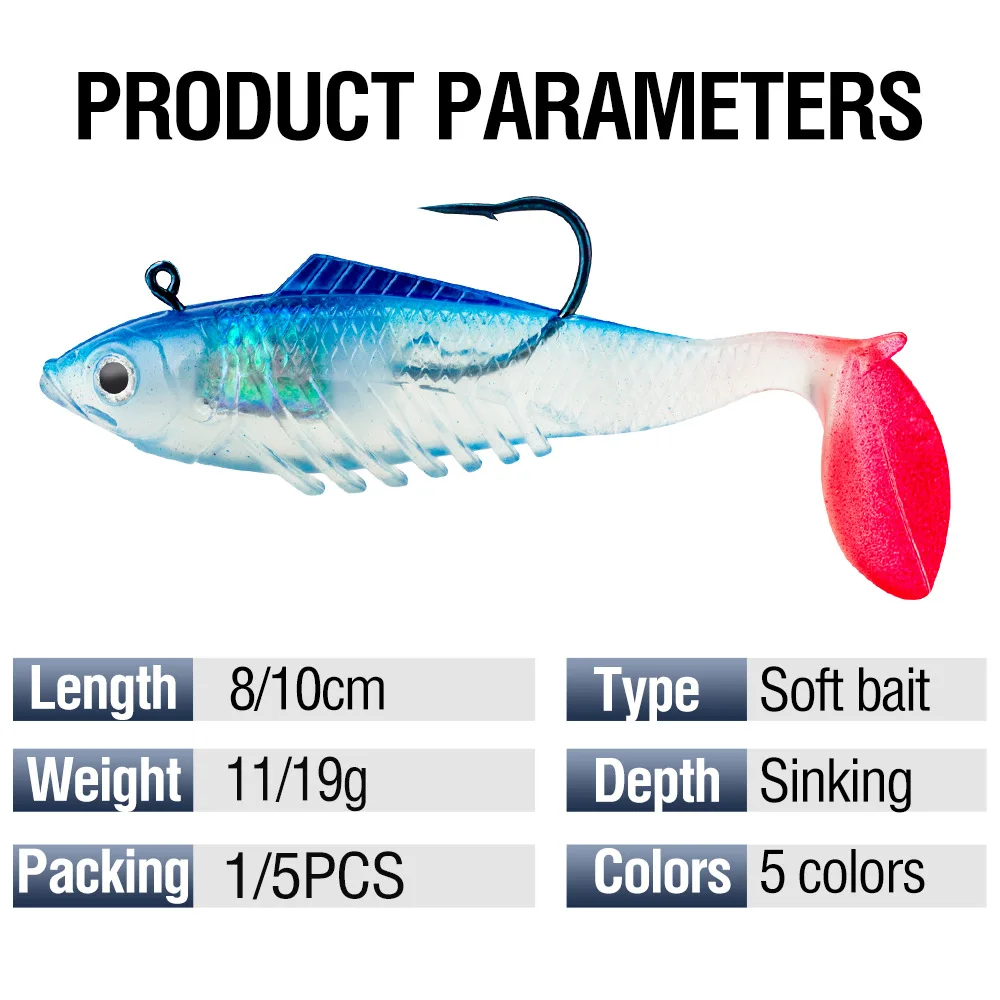 Señuelo de Pesca Jigging de 11g/19g, cebo suave con cola en T envuelto con pez de plomo, Swimbait Artificial falso para aparejos de Pesca de lubina