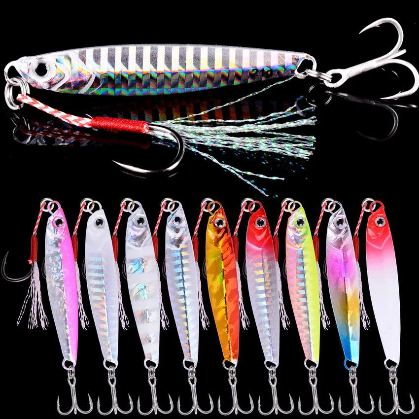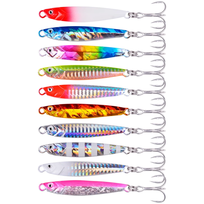Señuelo de pesca Jigging de brillo largo más lento, cebo de plantilla de hundimiento de cuchara, 7g-40g, Metal, para Orilla Cast, 10 unidades por lote