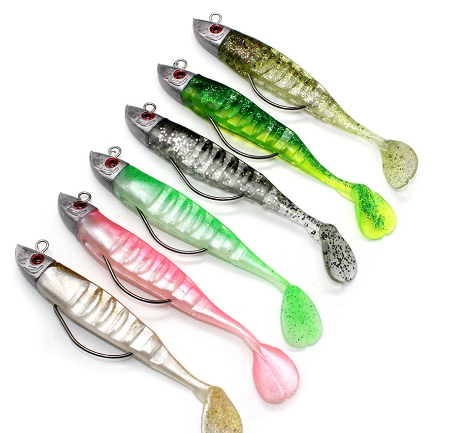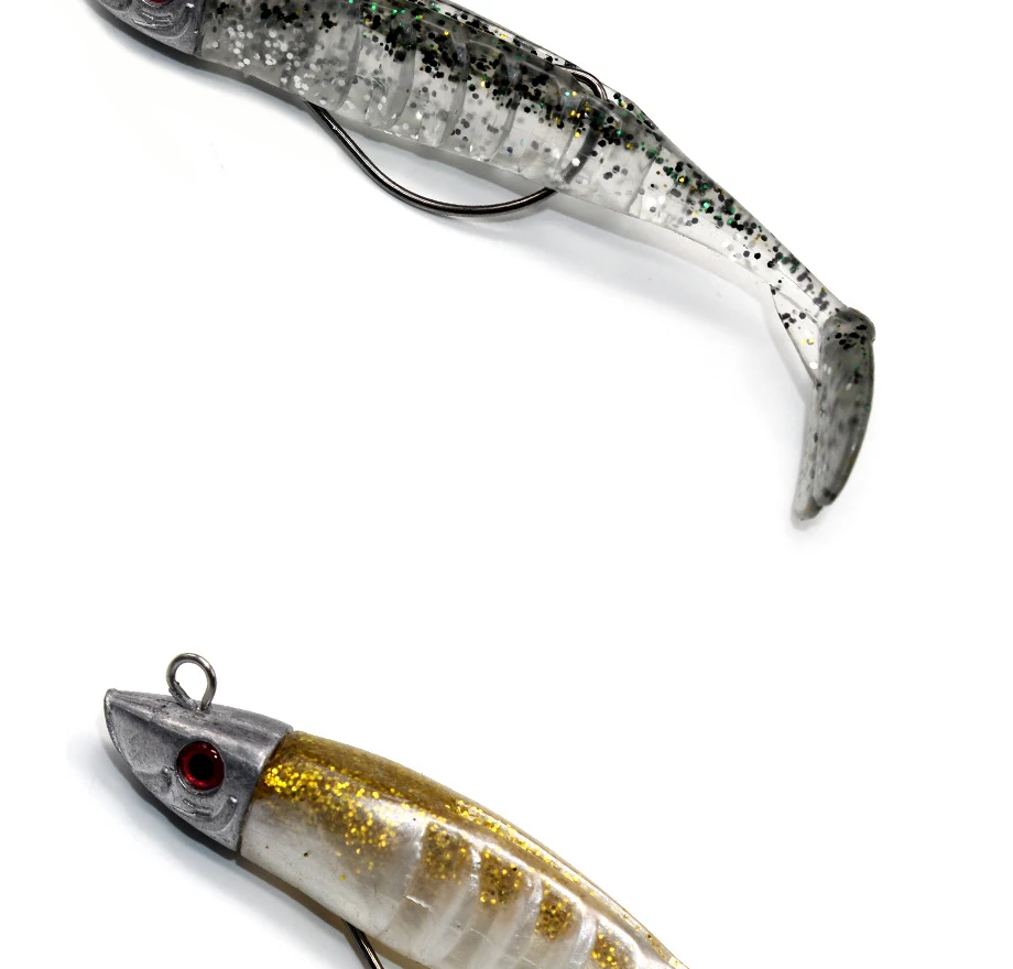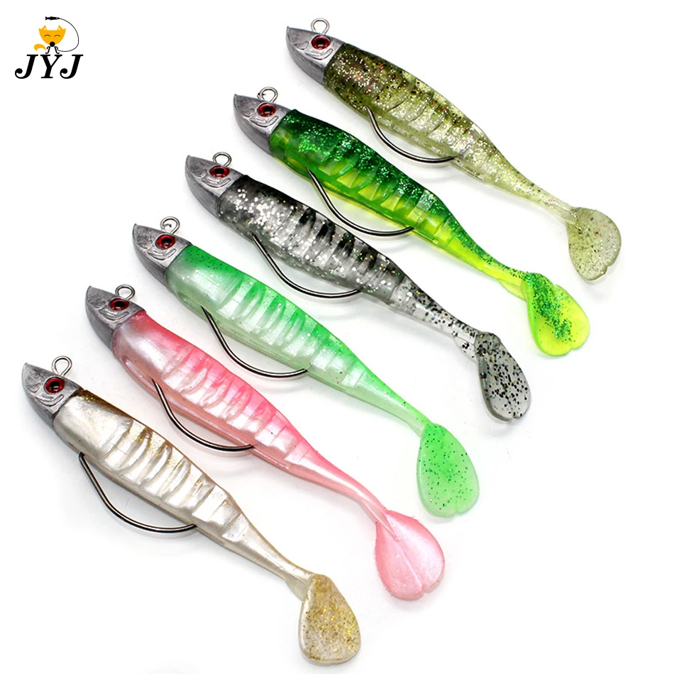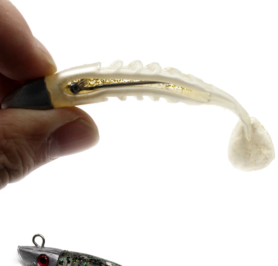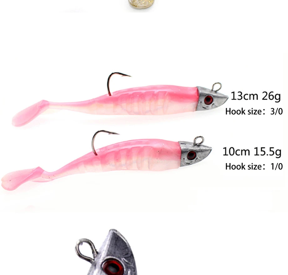Señuelo de pesca Jigging, cebo blando de 10cm, 15,5g/13cm y 26g, cabeza de bricolaje, cola de pez en T, aparejos de pesca de lubina, 1 unidad