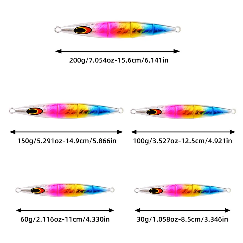 Señuelo de pesca Jigging largo de Metal fundido, anzuelo deslizante de sardina para barco de aguas profundas, 30g, 60g, 100g, 150g, 200g