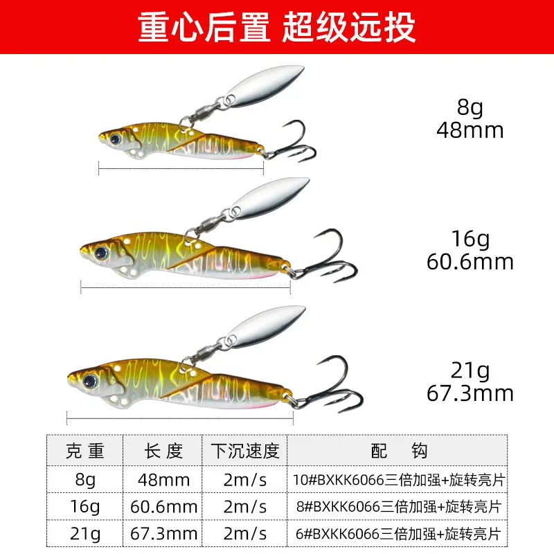 Señuelo de pesca Jigs VIB, cebo duro con vibración de fundición larga, Swimbait de doble gesto, 8g, 16g, 21g, rotación de cobre, señuelos artificiales Jigbait