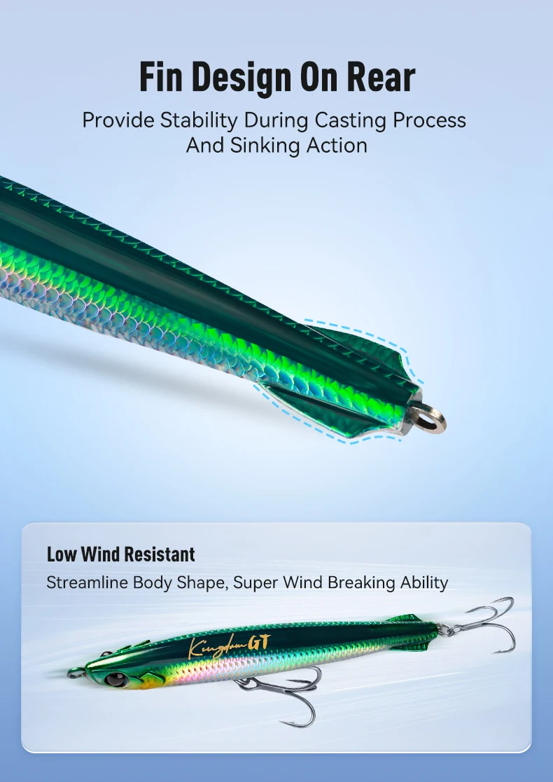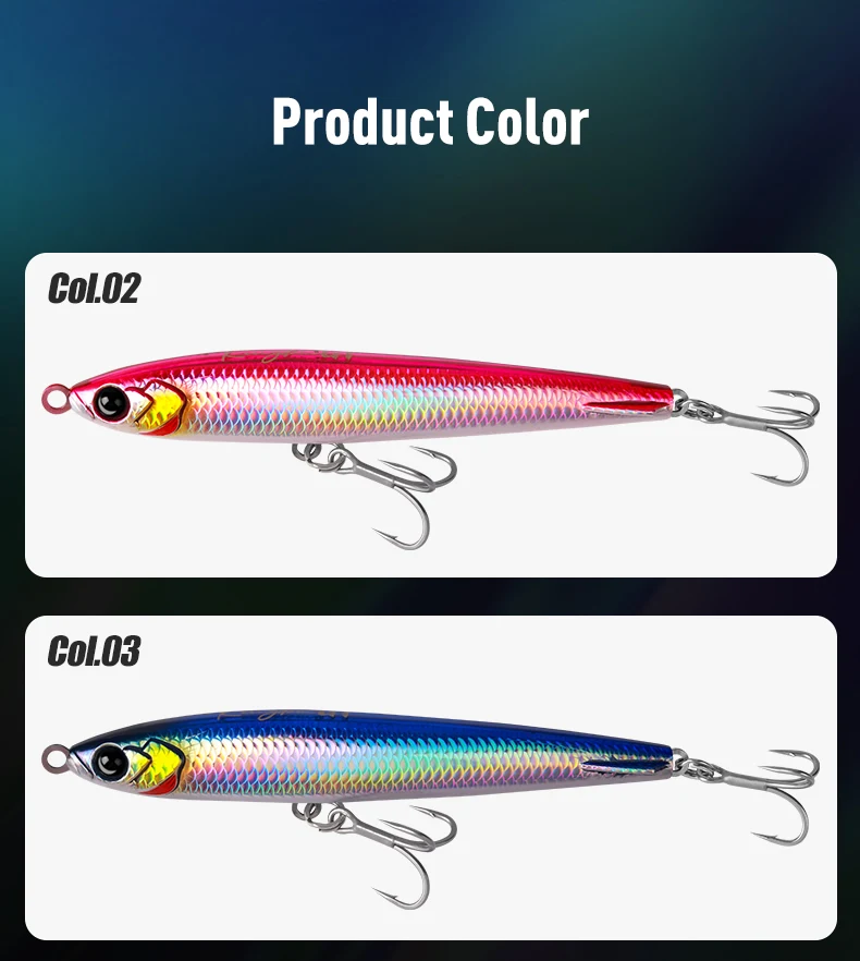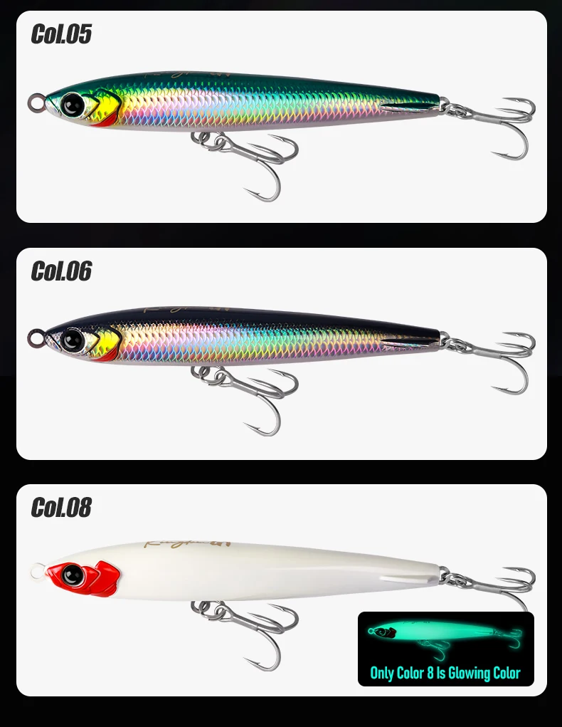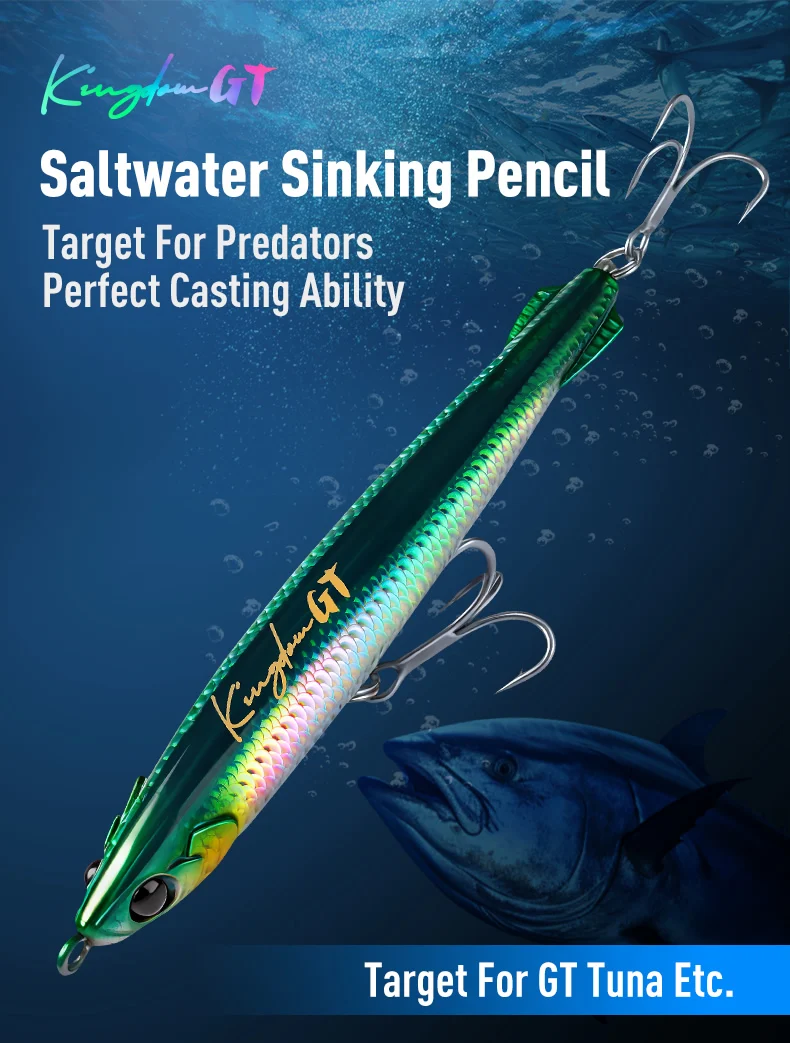 Señuelo de pesca del Reino, cebos de lápiz hundidos de agua salada, 135/160mm, 62/90/110g, señuelo para trucha y lubina, anzuelo triple, aparejos de Pecsa de fundición larga