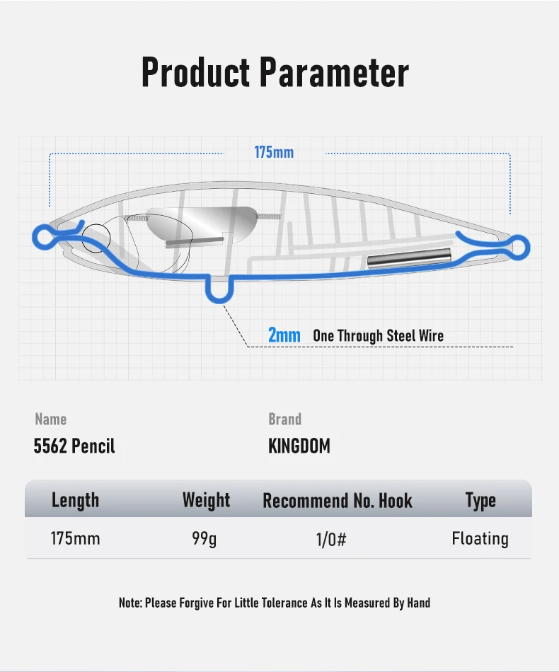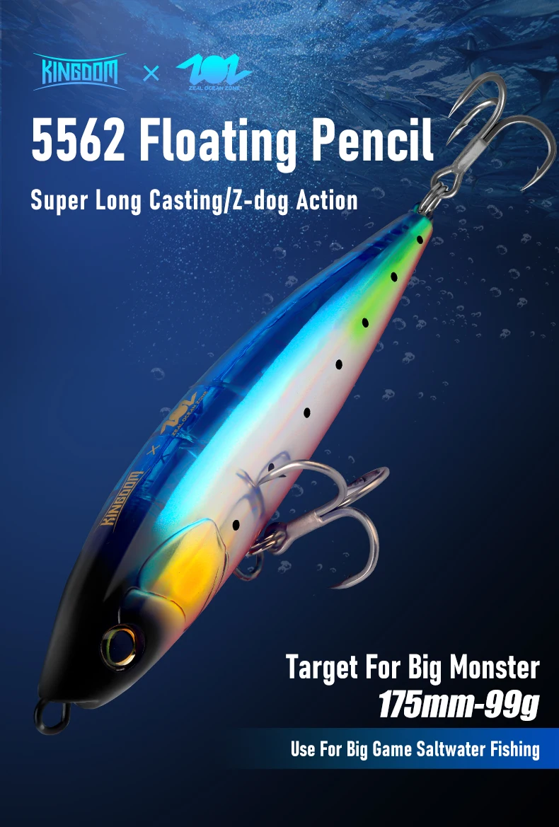 Kingdom Señuelo de pesca, lápiz flotante, 99g, 175mm, Wobbler de pesca dura Artificial, tiro largo, Jerkbait Topwater Swimbait, cebos de Pesca