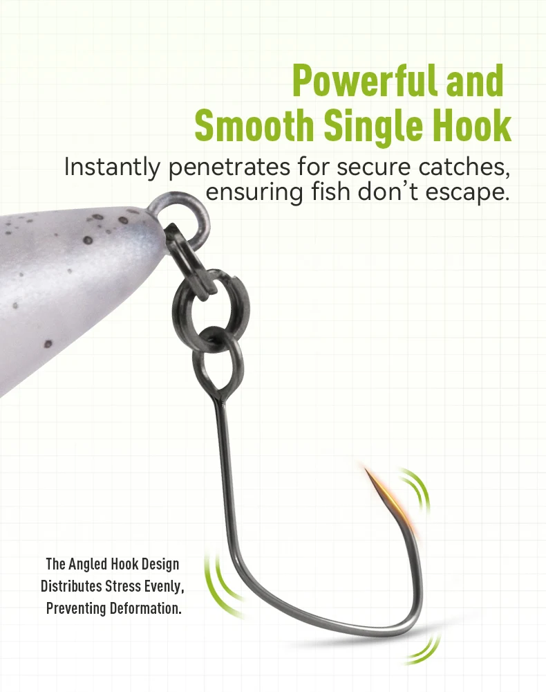 - Equipado con ganchos individuales afilados y resistentes al óxido para mejores anzuelos.