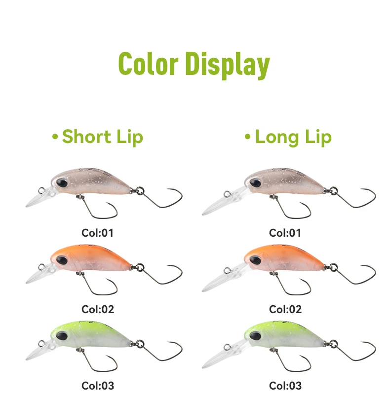 -Profundidad de buceo: 1,7 g con labio corto: 0,3-0,5 m; 1,85 g con labio largo: 0,5-1,2 m