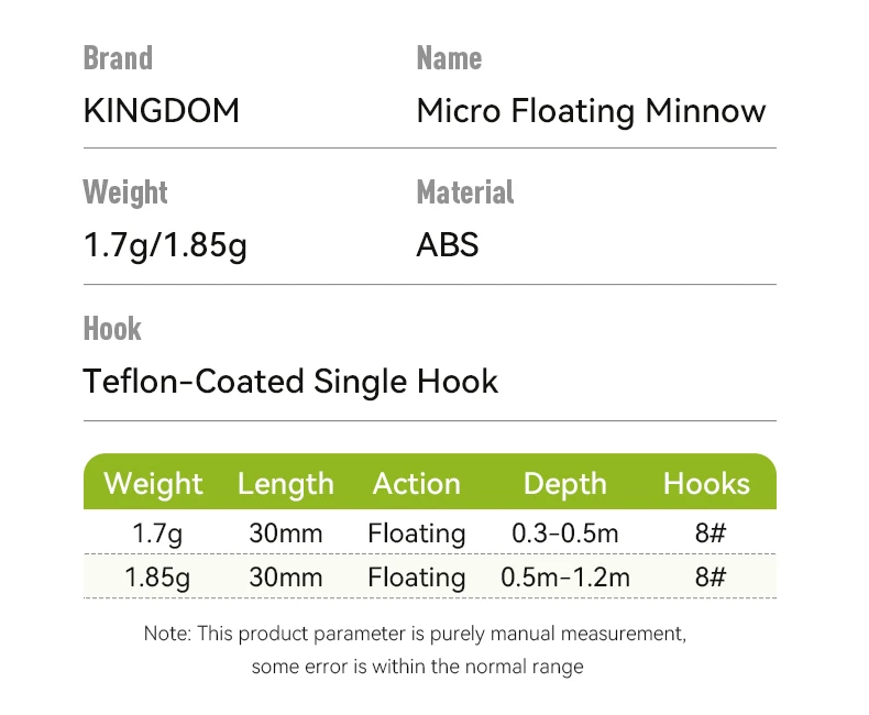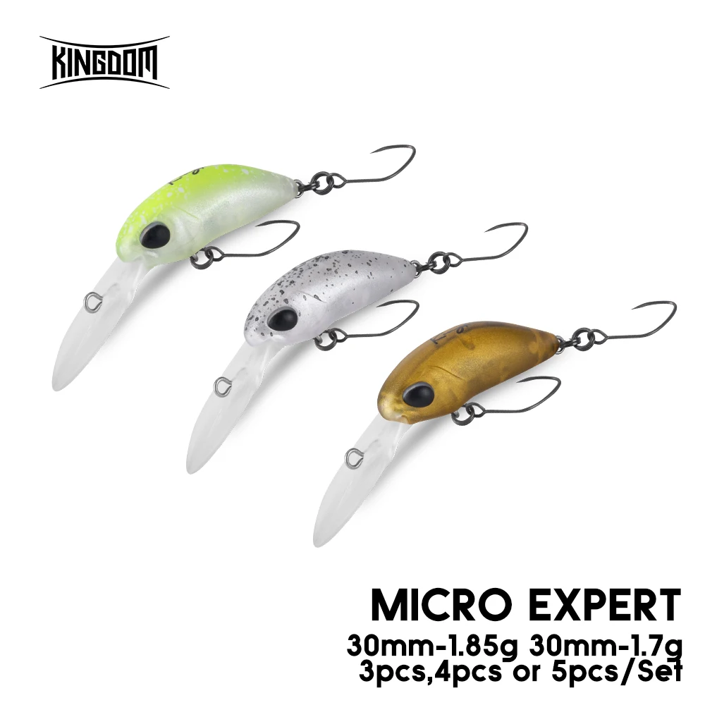 Kingdom Micro Minnow Señuelo de Pesca 3 uds 1.7g 1,85g diseño de labio único ganchos individuales flotantes Wobblers artificiales para pesca de lubina
