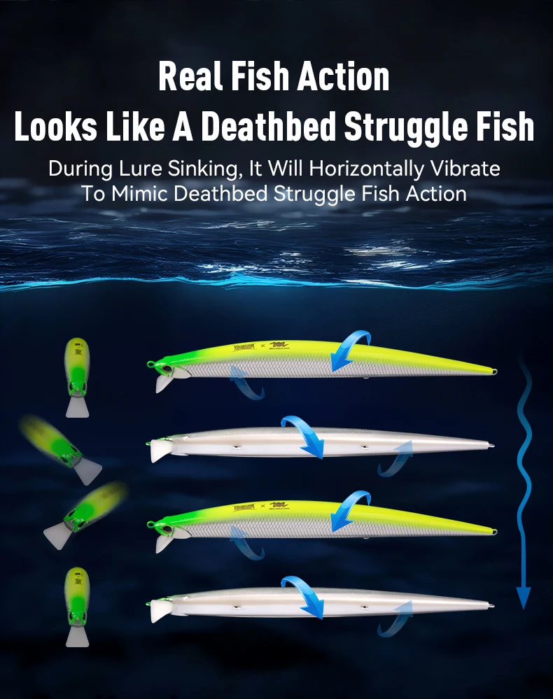 Kingdom Minnow señuelo de pesca 175mm 28,5g de largo lanzamiento hundido agua salada cebo Artificial delgado Wobblers duros para broco de mar