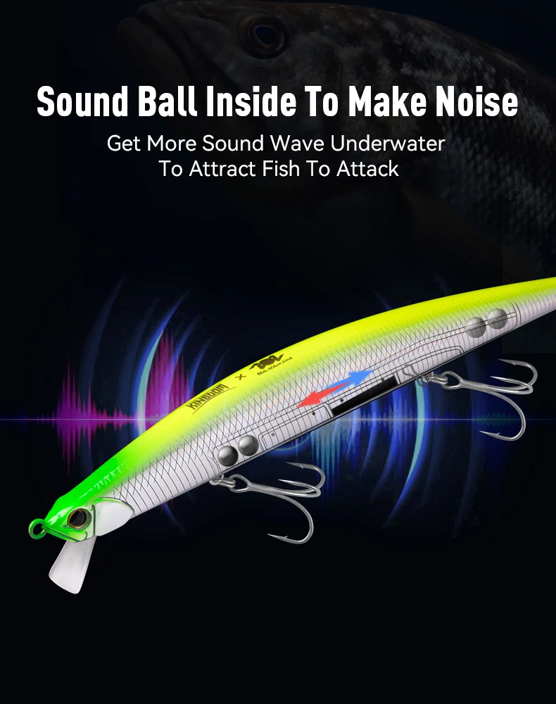 -Al utilizar bolas de acero para chocar y emitir ruido para atraer a los peces, las ondas sonoras súper fuertes estimulan el deseo de ataque del pez objetivo, haciendo que la pesca sea más eficiente.